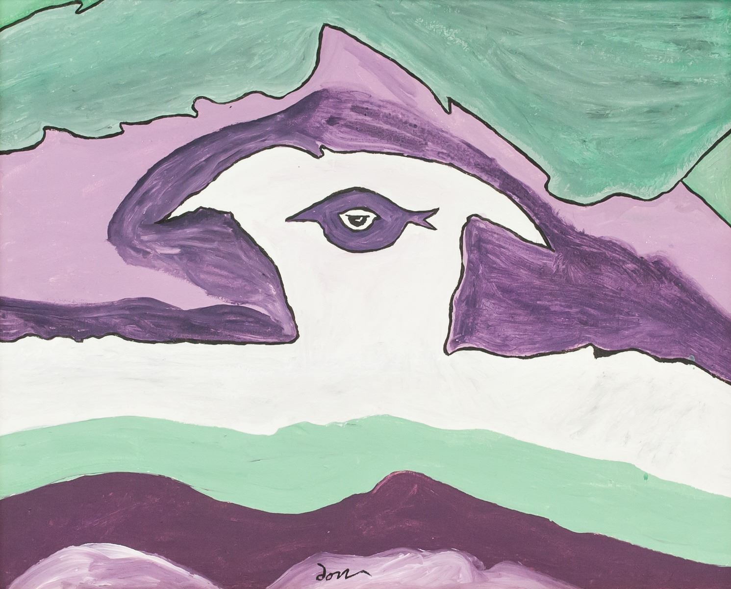 Oil on canvas, framed. Featuring an abstract portrait. Signed dove alongside lower edge. In the style of Arthur Dove (1880-1946, American). 39 x 49 cm (15.25 x 19.25 in), Frame: 52 x 62 cm (20.5 x 24.5 in). Provenance: This item has limited provenance from a Southern Ontario estate
