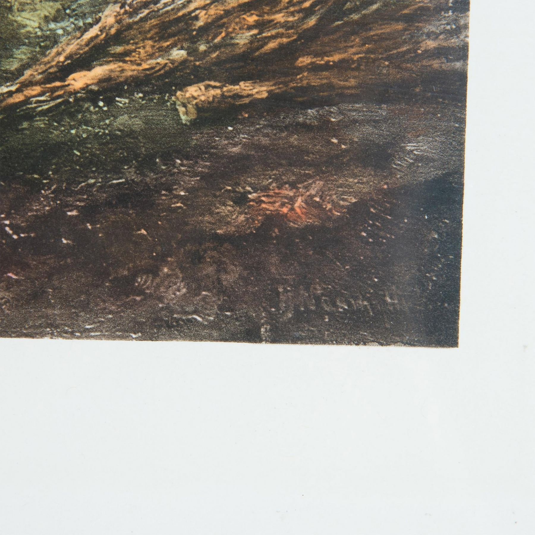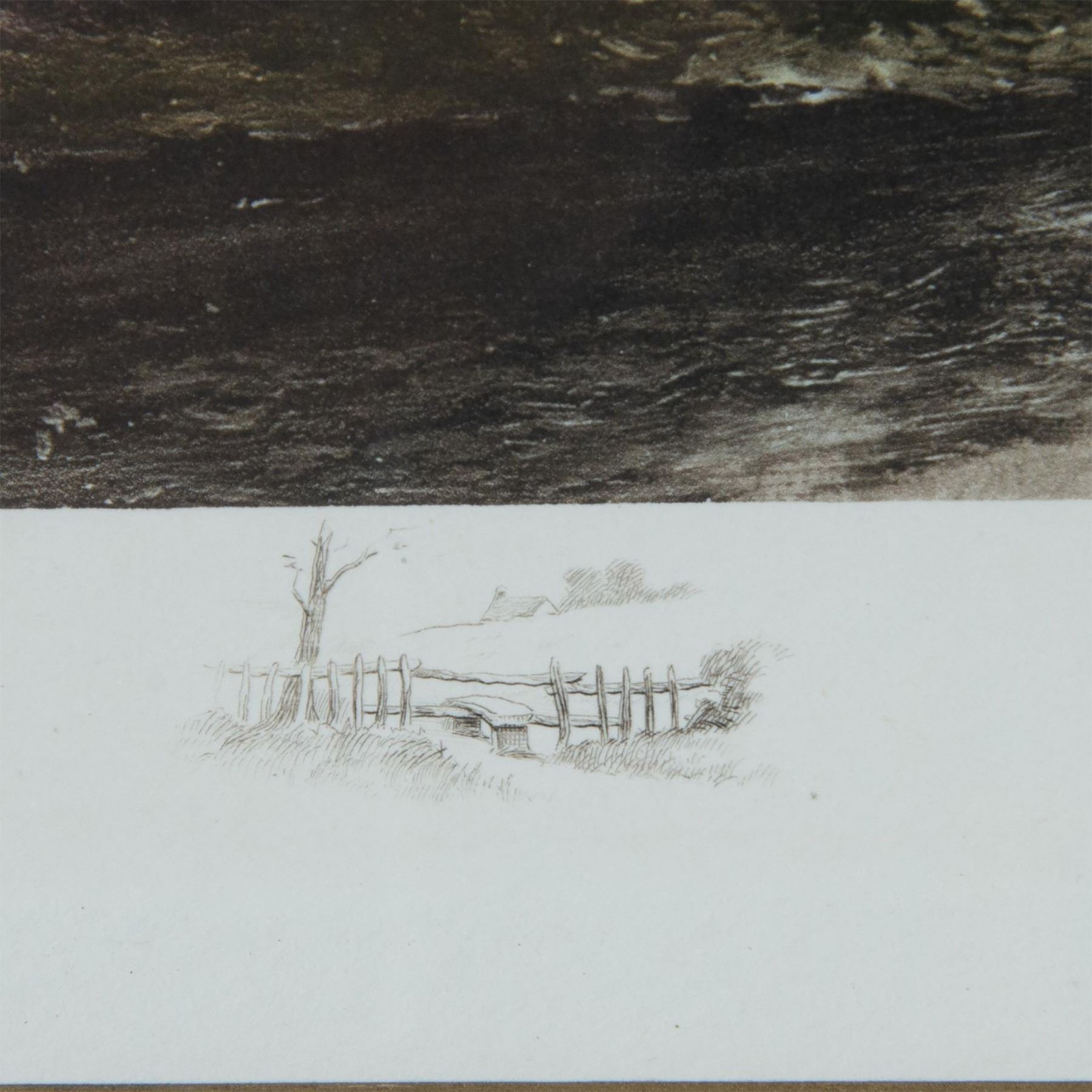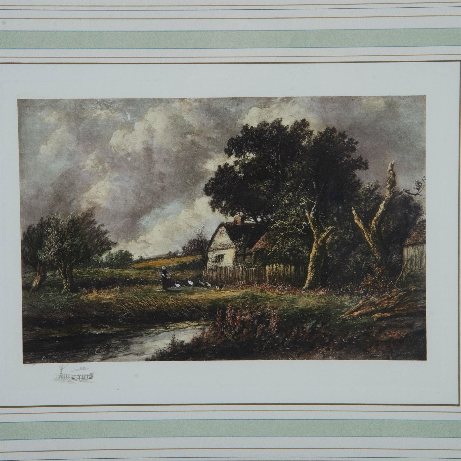 Finely colored original lithograph on laid paper that depicts a French countryside house in the style of Jean-Baptiste Camille Corot and the Barbizon School. Stamp on verso: Styled for Cobbies of Cashiers. W. King Ambler Old Prints and Maps. Includes a small biography on Corot. Signature in plate on lower right: illegible. Housed in a gilt and black frame with an off-white and light green mat. Sight dimensions: 13.75"L x 10"H. Frame size: 23"L x 19.50"H x 1"W. Artwork can be unframed and rolled for shipment.