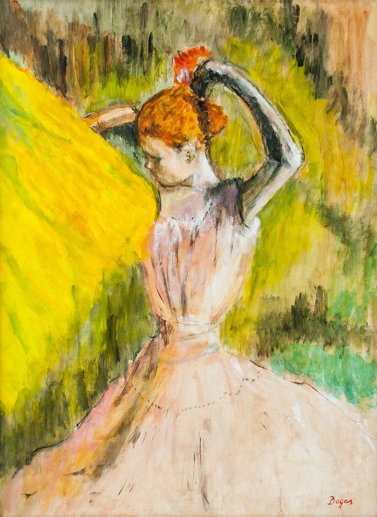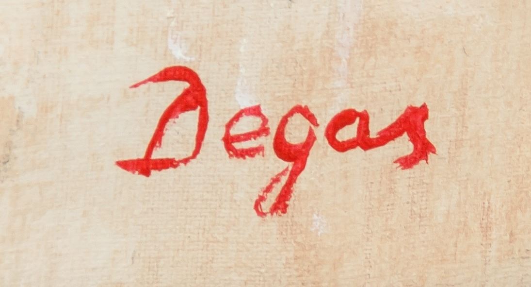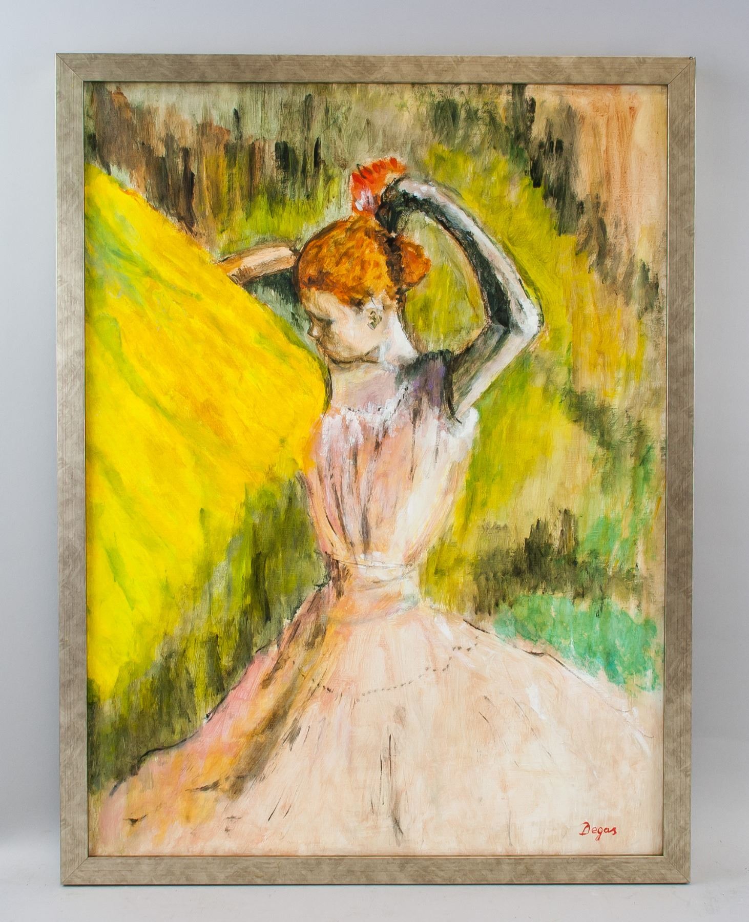 Oil on canvas. Featuring a dancer. Signed Degas on the lower right corner. Style of Edgar Degas (French, 1834-1917). PROVENANCE: Private European collection