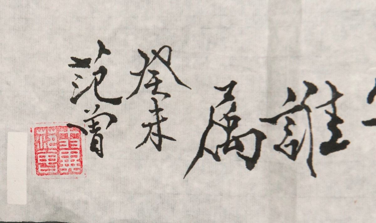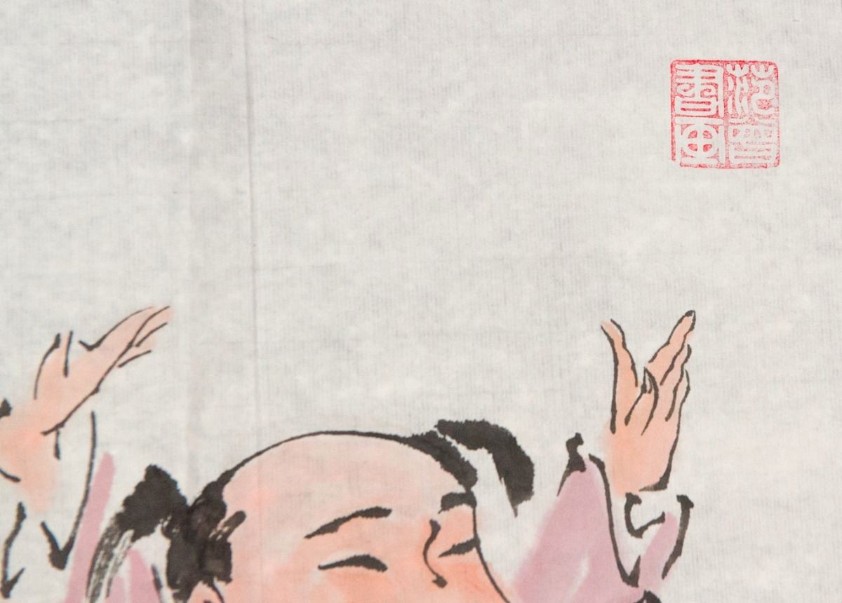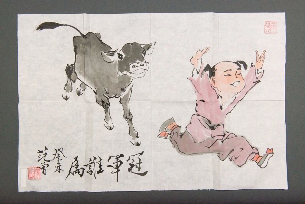 Child and cow, Chinese ink and watercolour on paper, signed and sealed. 43 cm x 66 cm.