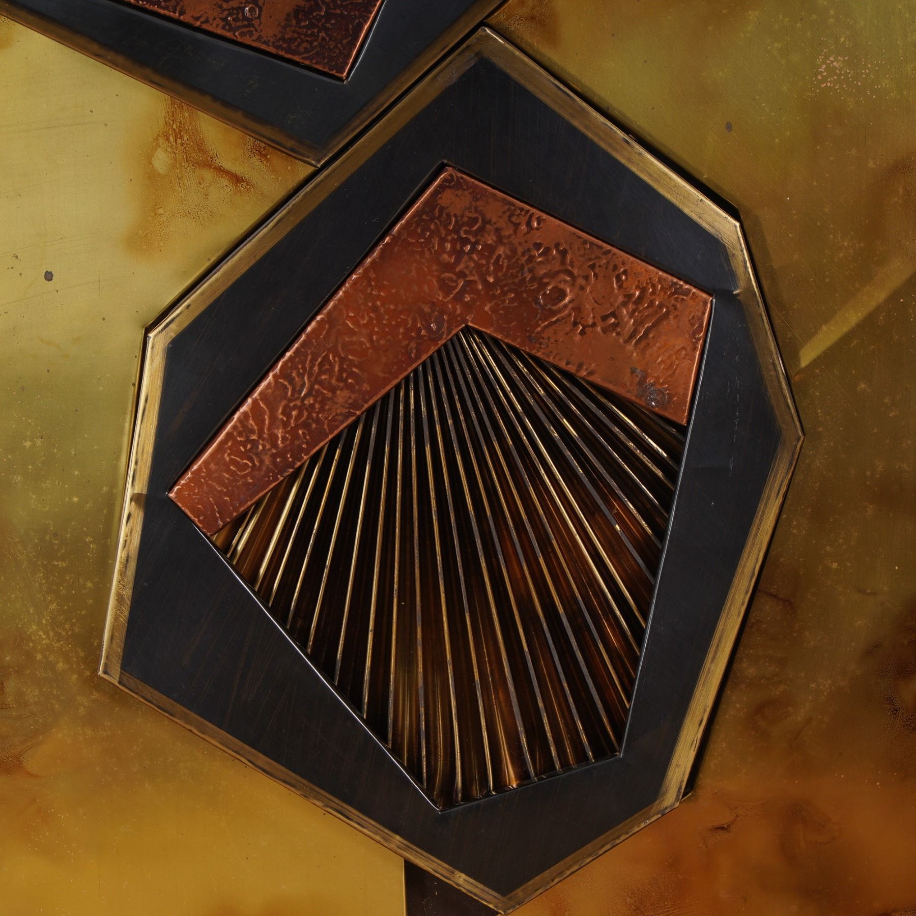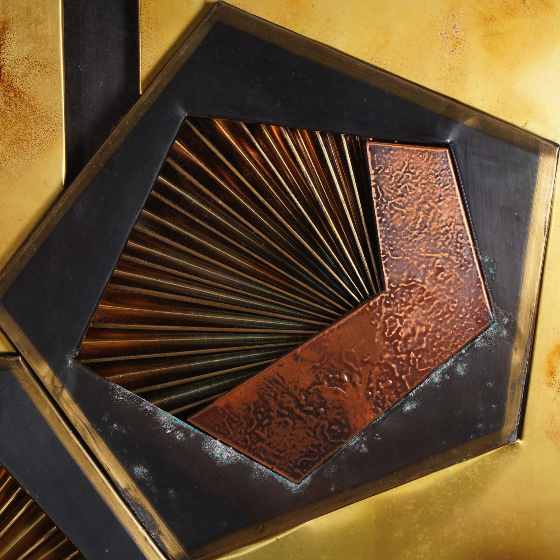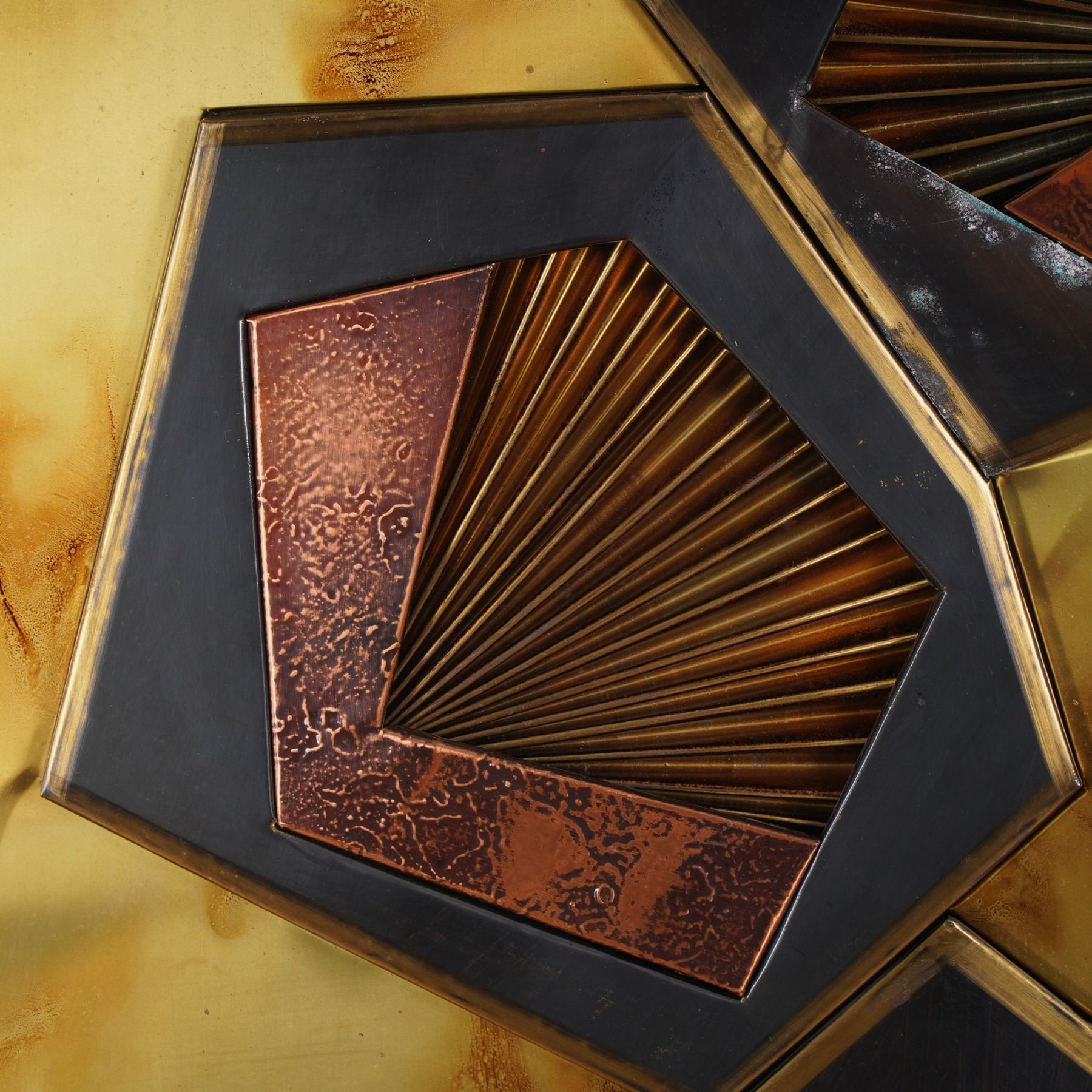 Style of Stephen Chun, Mid Century Modern Brass & Copper Wall Sculpture