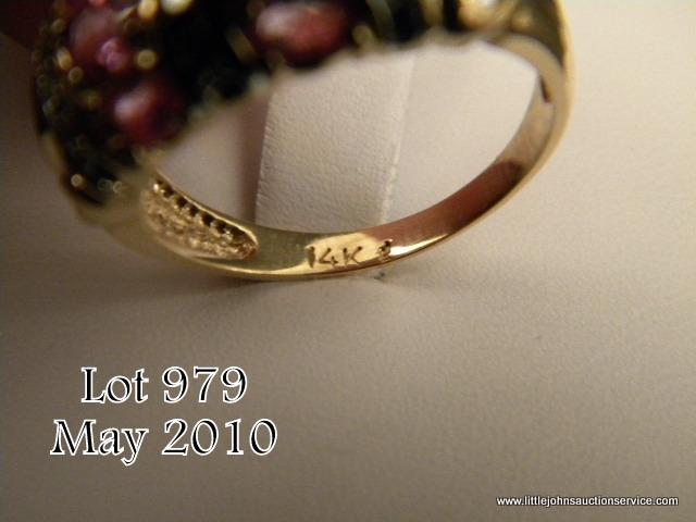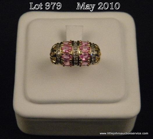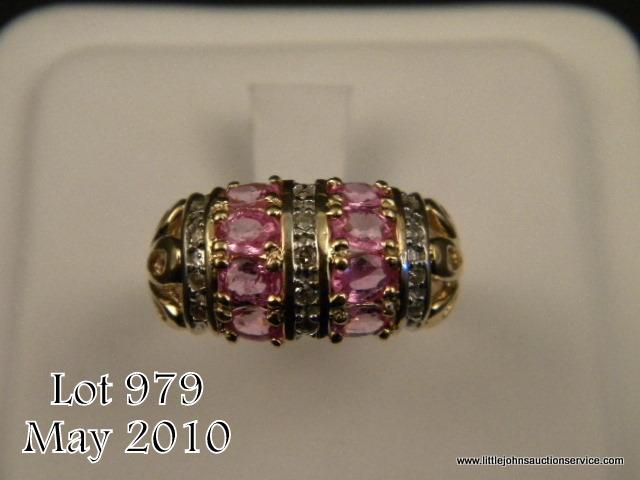 Stylish 10 karat yellow gold ladies domed ring set with eight fine oval pink sapphire weighing approx. 1.50 carats and side pave set diamonds. Retail $850.00 Estimate $300-$400 A nice item
