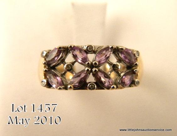 Stylish 10 karat yellow gold ladies ring set with Amethysts and diamonds weighing approx. 1.00 carat. Retail $650.00 Estimate $100-$300