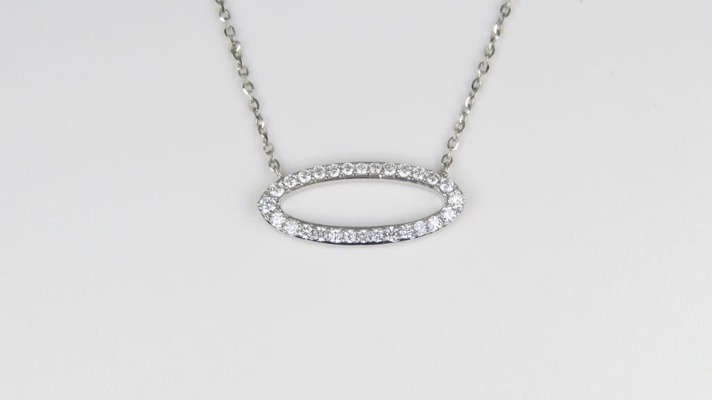 Pendant featuring 28 ‘IDEAL’ cut Diamonds weighing approx. 0.20 carats with F-G colors and VS clarity set in an oval shaped white gold setting.