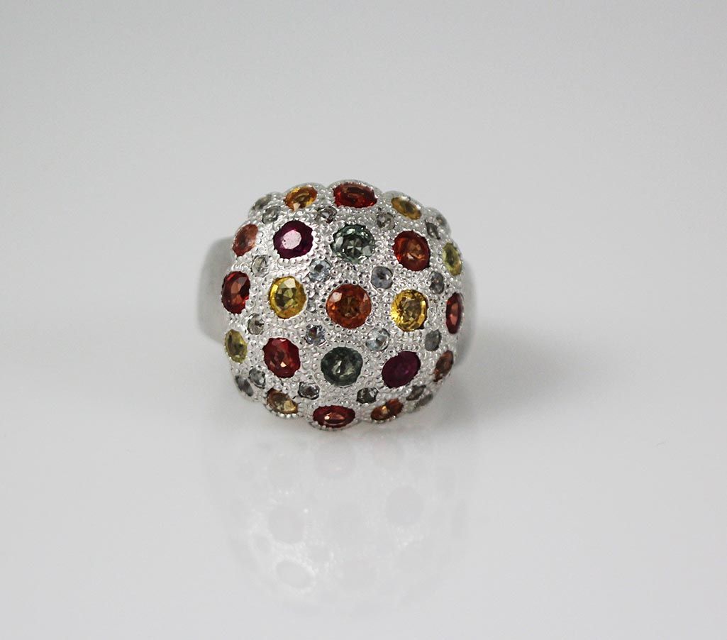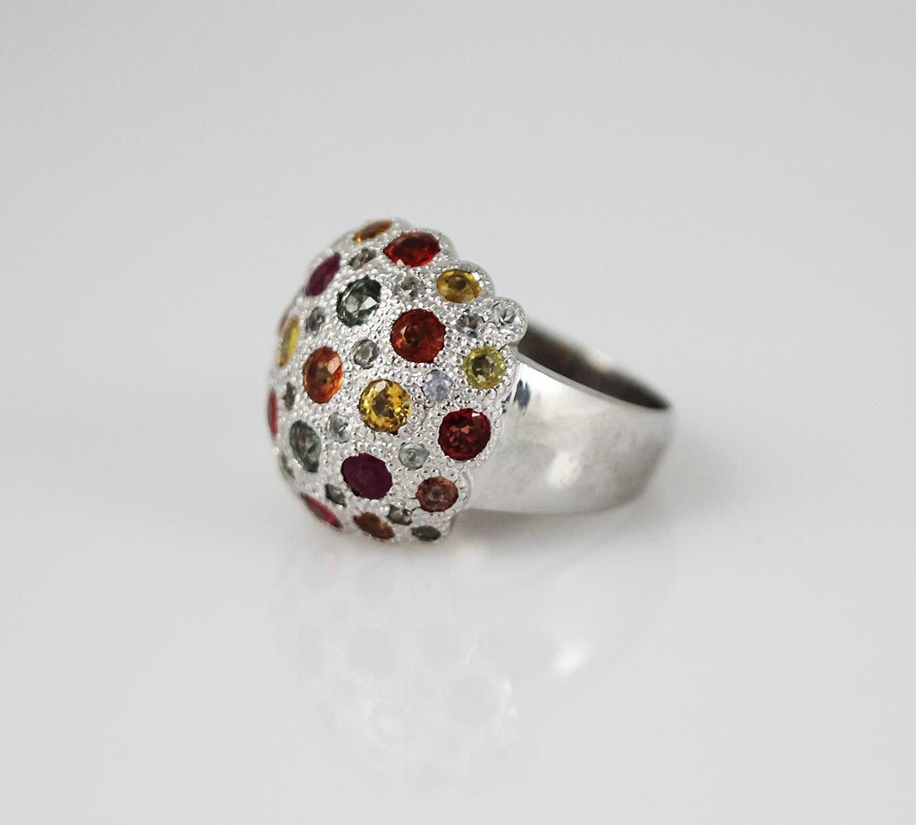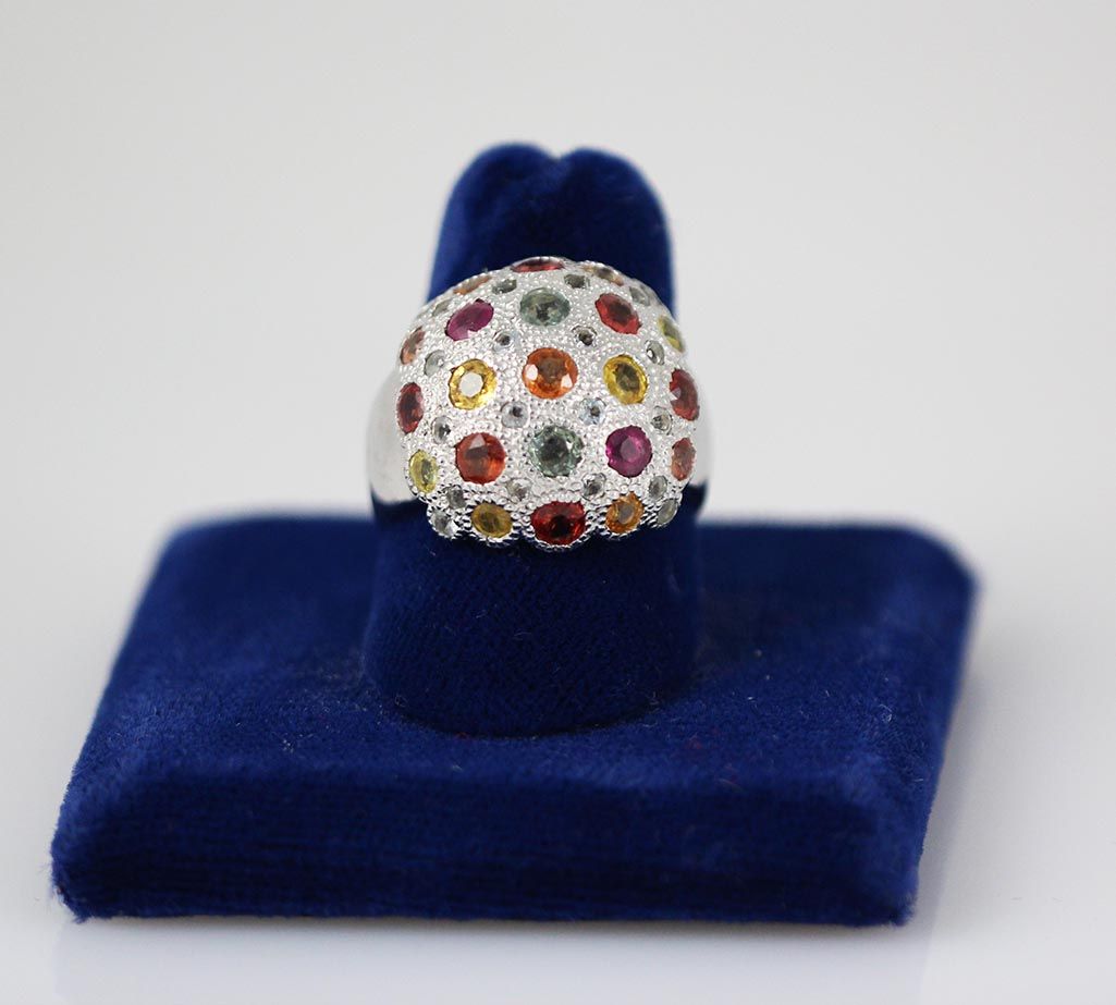 Stylish Multi-Gemstones Round Silver Ring w/ CZ stones, **|**|** 8.90g Multi Gemstones Round w/ CZ stones Silver Ring, Size 8 ; MSRP: $300