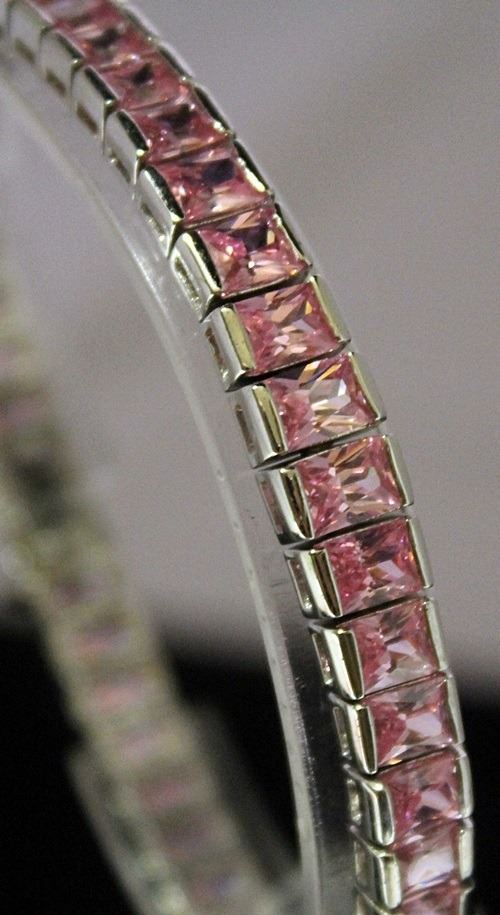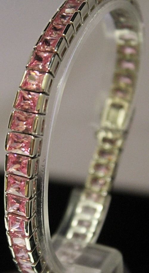 Sterling Silver Lab Pink Sapphire Bracelet. Twt approx 30 cts.