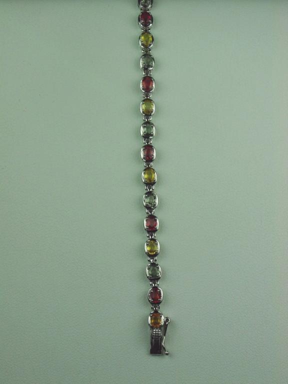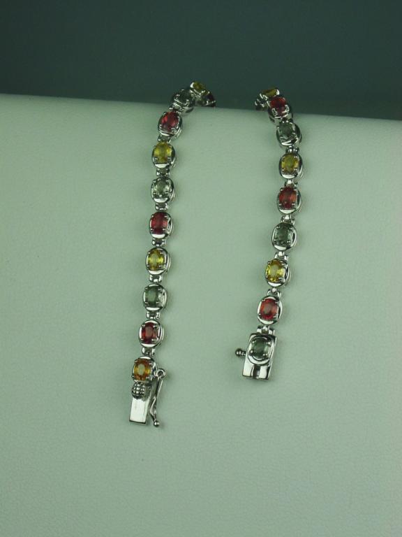 Stylish Sterling Silver ladies bracelet fine set with 27 oval multi-colored sapphires weighing approx. 7.00 carats. Retail $995.00 Estimate $300-$500