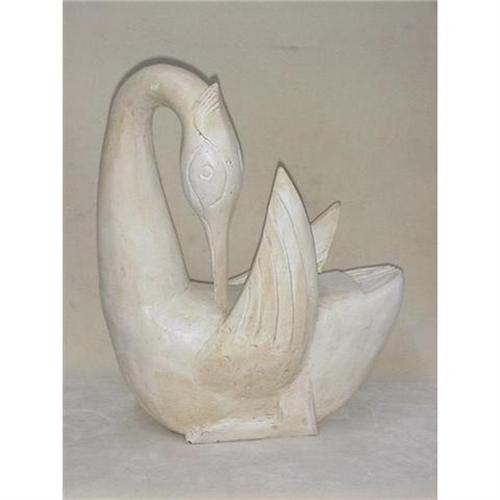 Large wood carving of a swan, 21" tall x 19" long x 10" wide. Painted white.