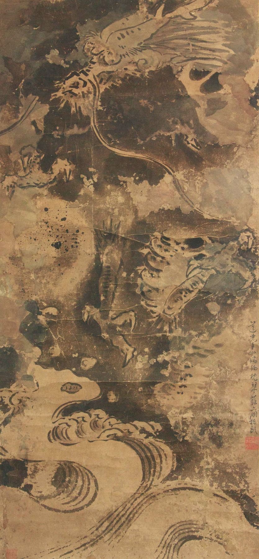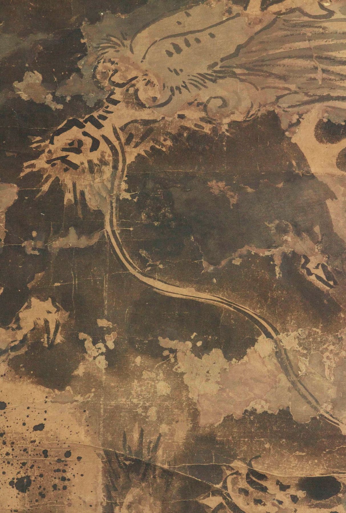 Dragon flying over the river and making wave; Chinese ink on paper roll; signed Su Liupeng (1791-1862); inscribed with 1 artist seal; 102 cm × 49 cm