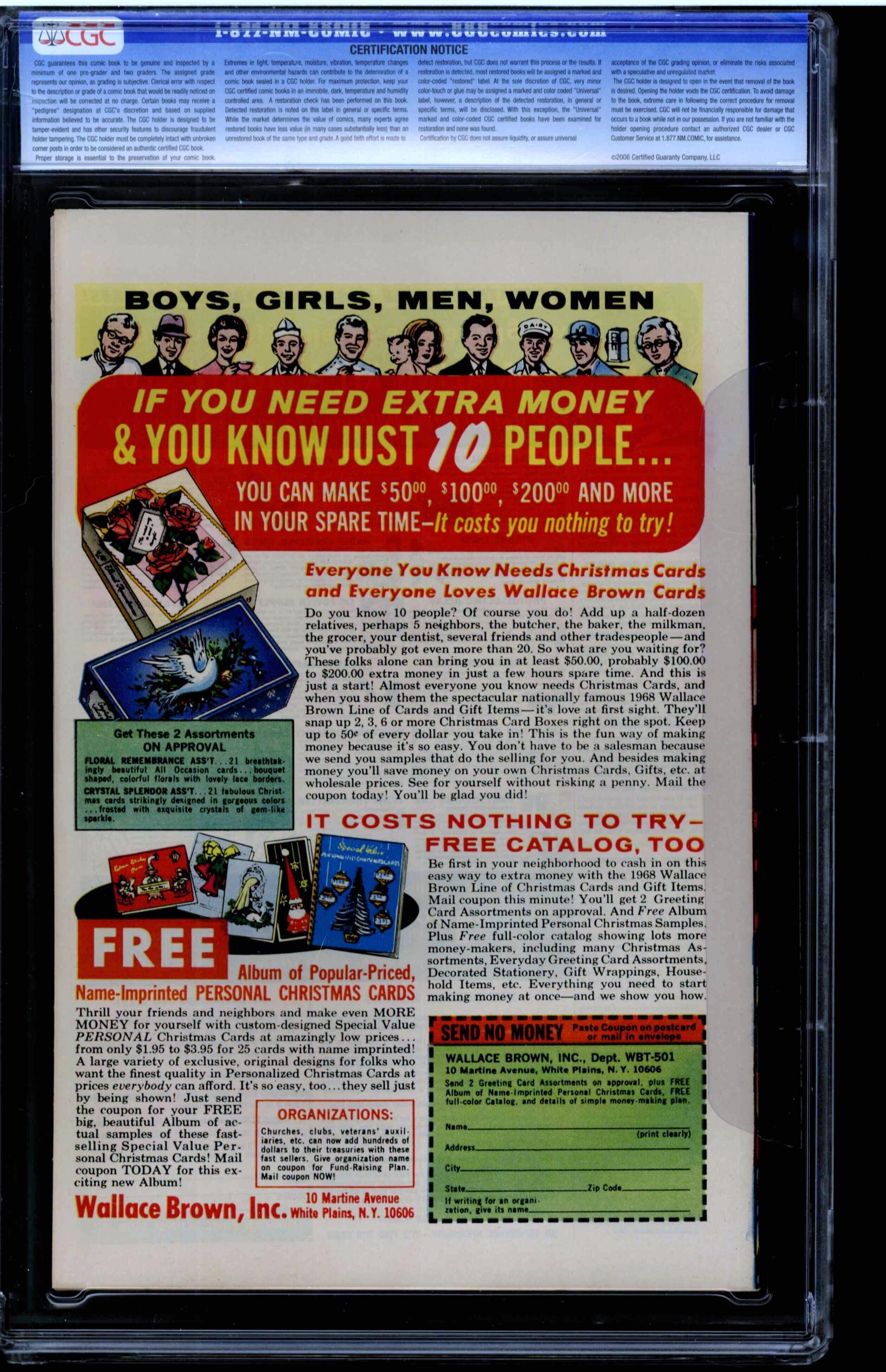The Auctioneer has reserved the right to reject any and all bids, and to bid at the auction. Auctioneers Auctions are not on approval. Auctioneer does not allow certified material to be returned because of possible differences of opinion with respect to the grade offered by any third party organization, dealer, or service. Absolutely no guarantee of grade is offered for un-certified property sold and subsequently submitted to a third-party grading service. There will be no exceptions to this policy. Under extremely limited circumstances, (e.g. gross cataloging error) a purchaser, who did not bid from the floor, may request Auctioneer to evaluate voiding a sale; such request must be made in writing detailing the alleged gross error, and submission of the lot to the Auctioneer must be pre-approved by the Auctioneer. Bidder must notify Auctioneer in writing of such request within three (3) days of the non-floor bidder receipt of the lot. Any lot that is to be evaluated must be in our offices within 30 days after Auction. Grading does not qualify for this evaluation process nor do such complaints constitute a basis to challenge the authenticity of a lot. AFTER THAT 30-DAY PERIOD, NO LOTS MAY BE RETURNED FOR REASONS OTHER THAN AUTHENTICITY. Lots returned must be housed intact in the original holder. No lots purchased by floor Bidders may be returned (including those Bidders acting as agents for others). Late remittance for purchases may be considered just cause to revoke all return privileges. B: Auctions conducted solely on the Internet have a THREE (3) DAY RETURN POLICY: Lots paid for within seven days of the Auction closing are sold with a three (3) day return privilege. You may return lots under the following conditions: Within three days of receipt of the lot, you must first notify Auctioneer by contacting Client Service by phone (314-680-8599) or e-mail (moundcityauctions@gmail.com), and immediately mail the lot(s) fully insured to the attention of Returns, Mound City Auctions 1081 Teson Rd. Hazelwood, MO. 63042. Lots must be housed intact in their original holder and in their original condition. You are responsible for the insured, safe delivery of any lots. Auctioneer will not be responsible for lots returned in non-registered mail or lots returned without prior authorization per section B. A non-negotiable return fee of 5% of the purchase price ($10 per lot minimum) will be deducted from the refund for each returned lot or billed directly. Postage and handling fees are not refunded. After the three-day period (from receipt), no items may be returned for any reason. Late remittance for purchases revokes all Return-Restock privileges. C: Bidders who have inspected the lots prior to the auction will not be granted any return privileges. D: Comic books sold referencing a third-party grading service are sold “as is” without any express or implied warranty. Certain warranties may be available from the grading services and the Bidder is referred to them for further details: Certified Guaranty Company, LLC. (CGC), P.O. Box 4738, Sarasota, FL 34230. E: Bidders who intend to challenge authenticity or provenance of a lot must notify Auctioneer in writing within thirty (30) days of the Auctions conclusion. In the event Auctioneer cannot deliver the lot or subsequently it is established that the lot lacks title, provenance, authenticity, or other transfer or condition issue is claimed, Auctioneer's liability shall be limited to rescission of sale and refund of purchase price; in no case shall Auctioneer's maximum liability exceed the high bid on that lot, which bid shall be deemed for all purposes the value of the lot. After one year has elapsed, Auctioneer's maximum liability shall be limited to any commissions and fees Auctioneer earned on that lot. F: All comics are guaranteed genuine, but are not guaranteed as to grade, since grading is a matter of opinion, an art and not a science, and therefore the opinion rendered by the Auctioneer or any third party grading service may not agree with the opinion of others (including trained experts), and the same expert may not grade the same item with the same grade at two different times. G: Since we cannot examine encapsulated comics, they are sold “as is”without our grading opinion, and may not be returned for any reason. Auctioneer shall not be liable for any patent or latent defect or controversy pertaining to or arising from any encapsulated collectible. In any such instance, purchaser's remedy, if any, shall be solely against the service certifying the collectible. H: Due to changing grading standards over time, differing interpretations, and to possible mishandling of items by subsequent owners, Auctioneer reserves the right to grade items differently than shown on certificates from any grading service that accompany the items. Auctioneer also reserves the right to grade items differently than the grades shown in the prior catalog should such items be reconsigned to any future auction. I: Although consensus grading is employed by most grading services, it should be noted as aforesaid that grading is not an exact science. In fact, it is entirely possible that if a lot is broken out of a plastic holder and resubmitted to another grading service or even to the same service, the lot could come back with a different grade assigned. J: Certification does not guarantee protection against the normal risks associated with potentially volatile markets. The degree of liquidity for certified collectibles will vary according to general market conditions and the particular lot involved. For some lots there may be no active market at all at certain points in time."