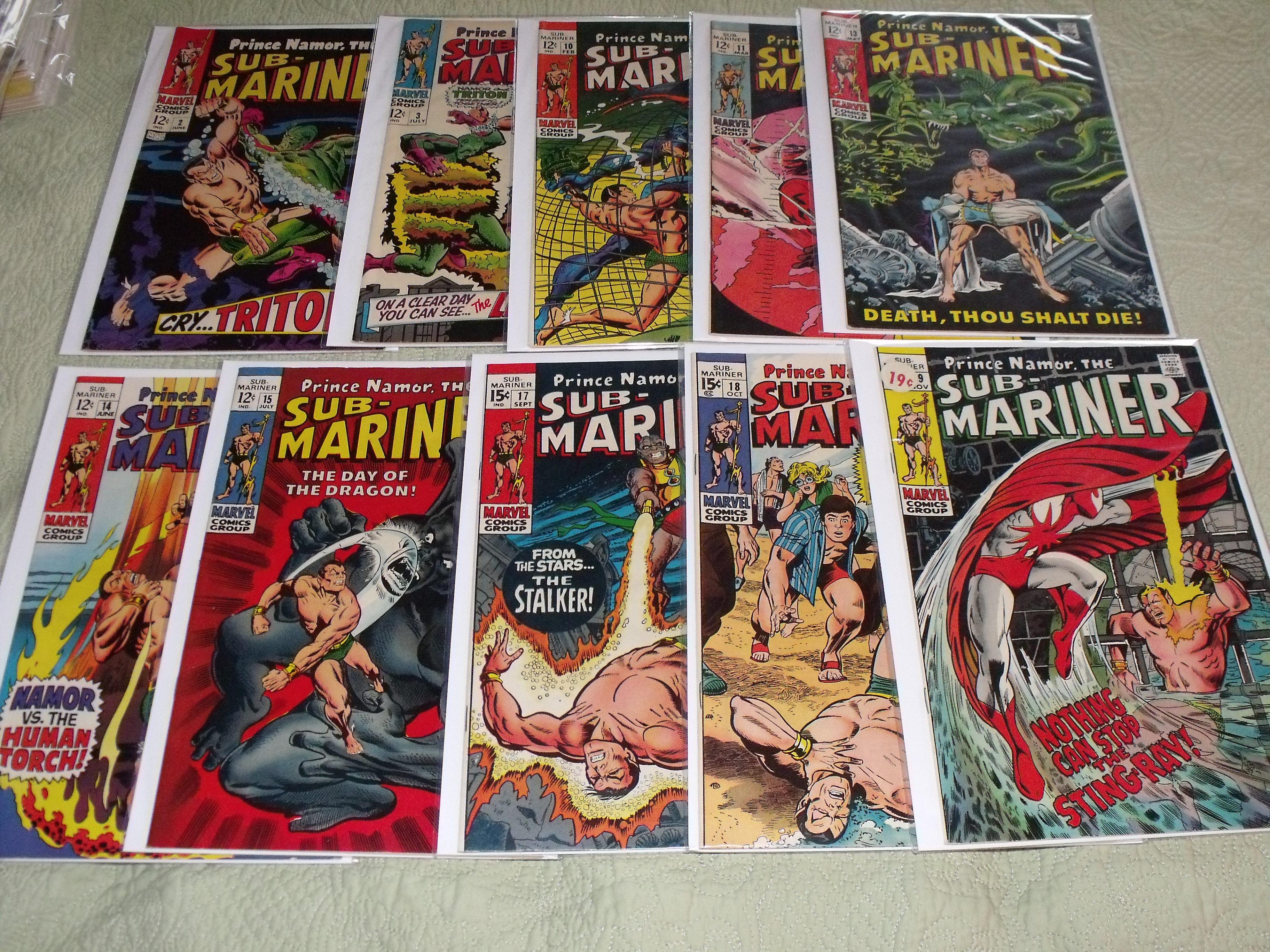 Sub-Mariner #2-3, 10-11, 13-15, 17-19. 10 issues total. Avg condition ranges from FN to VF