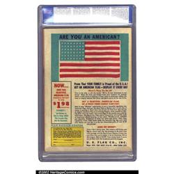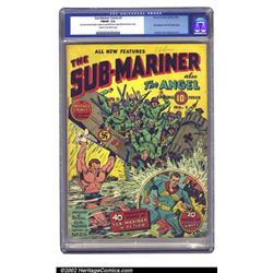 Sub-Mariner Comics #1 (Timely, 1941) CGC FN/VF 7.0 Cream to off-white pages. Subby's inaugural issue features a truly magnificent Schomburg cover featuring him overturning a boatload of Nazis into the sea. Unlike its sister titles, Marvel Mystery, Captain America and Human Torch, Subby covers were not soaked in traditional red every issue, making for a very "colorful" run. This copy has light soiling to the back cover and rounded corners, but still appears tight and attractive. CGC notes a very minor amount of glue on the spine of cover. Overstreet 2002 FN 6.0 value = $7,070; VF 8.0 value = $16,500. Important notice: We expect to be auctioning lots at the rate of 200-250 per hour. Sometimes eBay Premier live bid software cannot keep up with that pace, so we strongly recommend that you place a realistic proxy bid now as insurance to avoid disappointment. Also please note that all Heritage/CAA lots purchased through eBay Premier carry a 20% Buyer's Premium. Please make sure you read the Terms and Conditions.