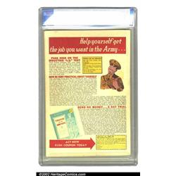 Sub-Mariner Comics #10 (Timely, 1943) CGC VF/NM 9.0 Off-white to white pages. Our hero puts a Japanese sub out of commission Subby-style, cracking the thing in two with a giant anchor. The Sub-Mariner was not known for being subtle. Looking sharp, this attractive copy has a tight spine and little wear to the edges, and presents well in its holder. Overstreet 2002 NM 9.4 value = $2,400. Important notice: We expect to be auctioning lots at the rate of 200-250 per hour. Sometimes eBay Premier live bid software cannot keep up with that pace, so we strongly recommend that you place a realistic proxy bid now as insurance to avoid disappointment. Also please note that all Heritage/CAA lots purchased through eBay Premier carry a 20% Buyer's Premium. Please make sure you read the Terms and Conditions.