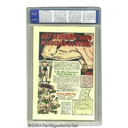 Sub-Mariner Comics #18 (Timely, 1945) CGC VF/NM 9.0 Off-white pages. Cover artist Alex Schomburg pits the Sub-Mariner against a pile of deep-sea divers who are diggin' for gold. Don't ever mess with Prince Namor on his turf! This is a gorgeous copy with a perfect spine and super-sharp edges. A small color flake out of the top edge accounts for the book not receiving an even higher grade. There is currently only one copy of this issue that has been graded higher by CGC. Overstreet 2003 VF/NM 9.0 value = $1,157; NM 9.4 value = $1,500. Important notice: Heritage usually auctions material at the rate of 200-250 lots per hour. On some occasions eBay Live bid software or the Internet may not be able to keep up with the pace of the auction. We recommend placing a realistic absentee bid now as insurance to avoid disappointment. Occasionally the auctioneer may eliminate or reject an eBay Live bid, and the auctioneer may also reopen a lot after the close of the eBay live bidding (usually because we missed an audience bid), and may reject your bid even if it shows you as the winning bidder. By bidding via eBay Live, you agree that Heritage may award the lot to another bidder at its sole discretion under the circumstances described above or any other reasonable circumstances. Since eBay bids are not shown to us until we open the lot on the floor, we treat those bids just like floor bids. In most cases the floor responds before the eBay bid is presented to us, due to Internet lag time, so for consistency we have made it a policy that floor bids are always considered first over tie eBay live bids. Also please note that all Heritage lots purchased through eBay Live carry a 20% Buyer's Premium. Please make sure you read the Terms and Conditions before you bid.