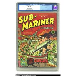Sub-Mariner Comics #2 (Timely, 1941) CGC VF 8.0 Cream to off-white pages. Timely at its finest, with one of comics' most distinctive characters battling Nazis in a great Alex Schomburg cover, and the Sub-Mariner's creator, Bill Everett, offering 40 pages of stellar interior work. Paul Gustavson adds 20 pages on the Angel feature. At this writing, this ranks as the nicest copy CGC has certified of issue #2. Overstreet 2002 VF 8.0 value = $3,200. Important notice: We expect to be auctioning lots at the rate of 200-250 per hour. Sometimes eBay Premier live bid software cannot keep up with that pace, so we strongly recommend that you place a realistic proxy bid now as insurance to avoid disappointment. Also please note that all Heritage/CAA lots purchased through eBay Premier carry a 20% Buyer's Premium. Please make sure you read the Terms and Conditions.