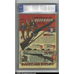 Sub-Mariner Comics #5 (Timely, 1942) CGC VF+ 8.5 Cream to off-white pages. The Sub-Mariner has resorted to using a machine gun to kill the Japanese on this early war cover. This high-grade book has a 20-page Angel story, and the incredible cover is by Gabriele and Klein. A nice book to add to any Timely collection. Overstreet 2002 VF 8.0 value = $1,591. Important notice: We expect to be auctioning lots at the rate of 200-250 per hour. Sometimes eBay Premier live bid software cannot keep up with that pace, so we strongly recommend that you place a realistic proxy bid now as insurance to avoid disappointment. Also please note that all Heritage/CAA lots purchased through eBay Premier carry a 20% Buyer's Premium.