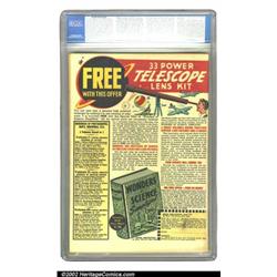 Sub-Mariner Comics #8 (Timely, 1942) CGC NM- 9.2 Cream to off-white pages. Schomburg hands in a classic cover this issue, featuring Subby tipping over a Japanese aircraft carrier, causing it's planes and soldiers to slide right into the ocean. The tiniest bit of skimming at the top and bottom spine, visible on the back cover, are the only defects that can be found on this gorgeous book. Exuding deep colors, a tight spine and sharp edges, the copy is every bit a NM-. And it's the nicest one graded by CGC as of this writing. Overstreet 2002 NM 9.4 value = $2,400. Important notice: We expect to be auctioning lots at the rate of 200-250 per hour. Sometimes eBay Premier live bid software cannot keep up with that pace, so we strongly recommend that you place a realistic proxy bid now as insurance to avoid disappointment. Also please note that all Heritage/CAA lots purchased through eBay Premier carry a 20% Buyer's Premium. Please make sure you read the Terms and Conditions.