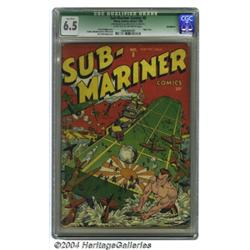 <B>Sub-Mariner Comics #8 (Timely, 1942) CGC Qualified FN+ 6.5 Light tan to off-white pages.</B></I> Alex Schomburg cover. Angel backup feature. CGC notes, "23rd page missing, affects story. Incomplete." Overstreet 2004 GD 2.0 value = $228; VG 4.0 value = $456; FN 6.0 value = $684; VF 8.0 value = $1,425. <BR><BR><B>Important notice:</B> Heritage usually auctions material at the rate of 200-250 lots per hour. On some occasions eBay Live bid software or the Internet may not be able to keep up with the pace of the auction. We recommend placing a realistic absentee bid now as insurance to avoid disappointment. Occasionally the auctioneer may eliminate or reject an eBay Live bid, and the auctioneer may also reopen a lot after the close of the eBay live bidding (usually because we missed an audience bid), and may reject your bid even if it shows you as the winning bidder. By bidding via eBay Live, you agree that Heritage may award the lot to another bidder at its sole discretion under the circumstances described above or any other reasonable circumstances. Since eBay bids are not shown to us until we open the lot on the floor, we treat those bids just like floor bids. In most cases the floor responds before the eBay bid is presented to us, due to Internet lag time, so for consistency we have made it a policy that floor bids are always considered first over tie eBay live bids. Also please note that all Heritage lots purchased through eBay Live carry a 20% Buyer's Premium. Please make sure you read the Terms and Conditions before you bid. </span></font></tr></table></td></tr></table>