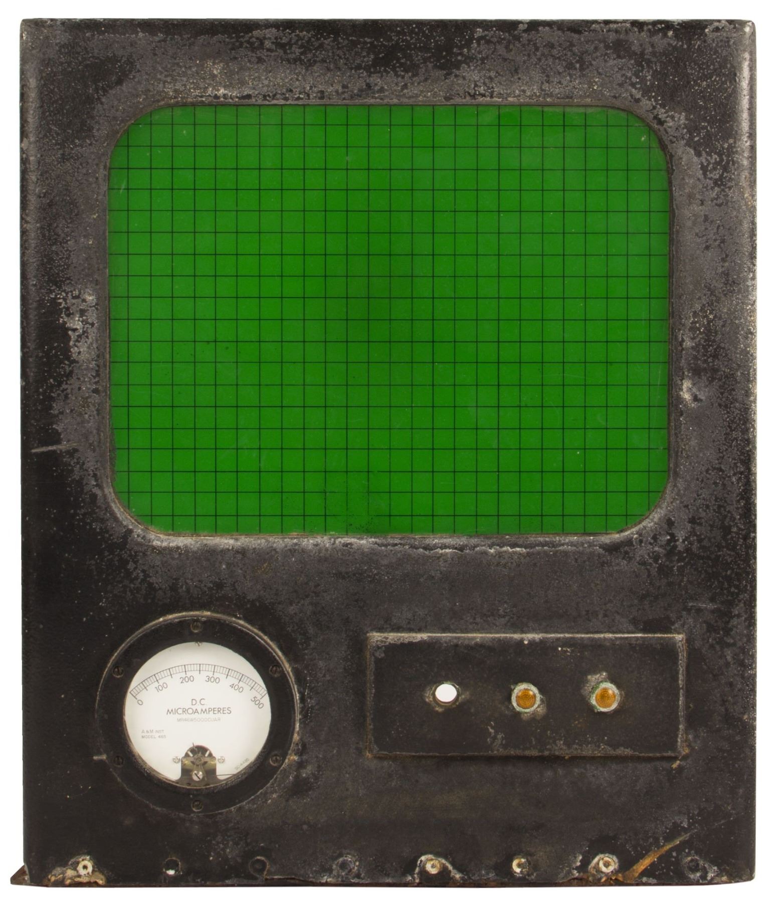 (Disneyland, c.1960s-70s) An original sonar display prop from the Submarine Voyage at Disneyland. Displays such as this within the attraction helped guests feel as though they were actually part of a vast underwater voyage. The prop has a fiberglass body and some of the minor electrical components are still attached on the reverse. Measuring 20"x17" and 4" deep, this rare prop is in good condition overall with some cracks or chips in the paint and spots of wear around the edges.