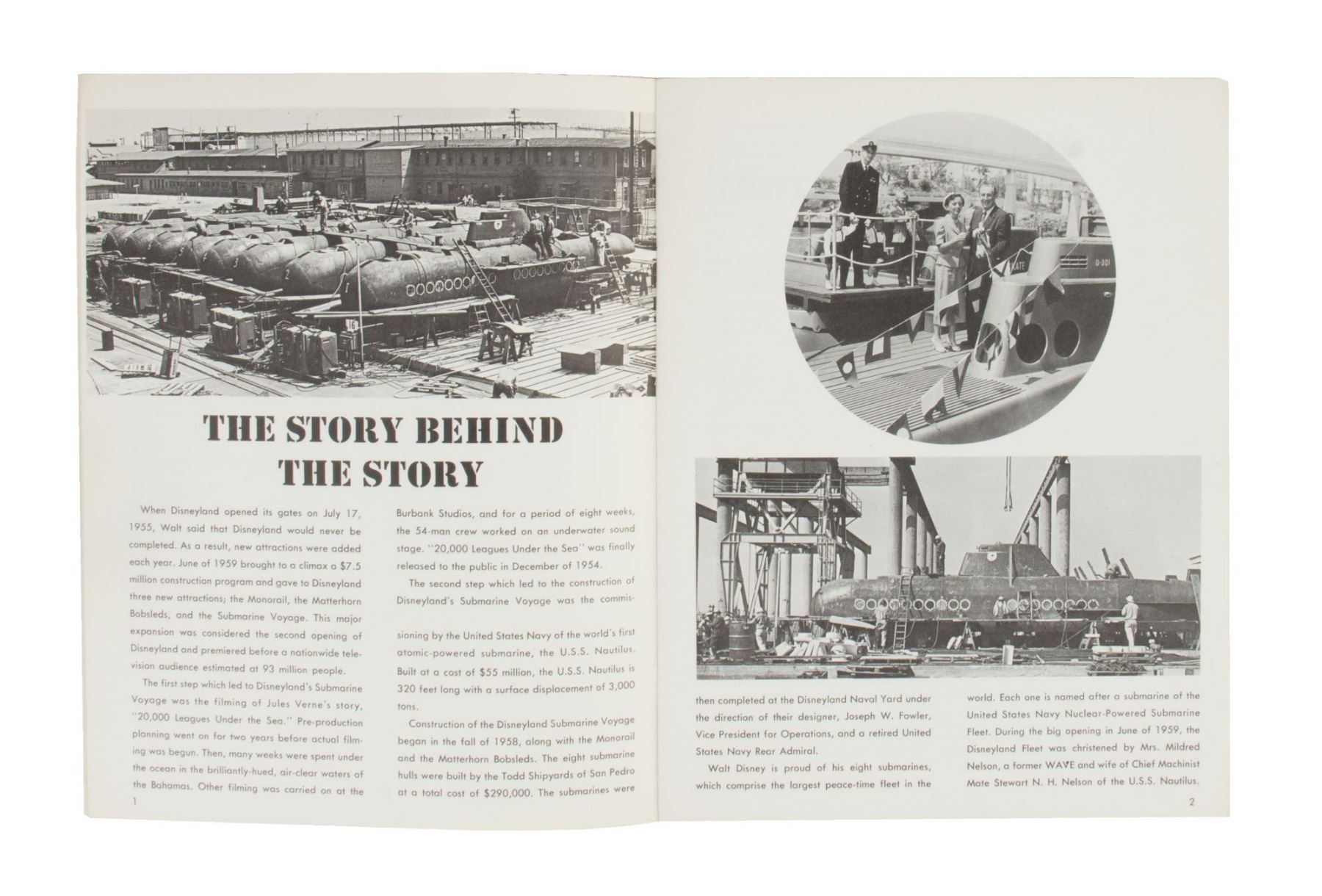 (Disneyland, 1966) A manual for submarine operators on the "Submarine Voyage" attraction at Disneyland. The manual covers the history behind the attraction, operational procedures, and facts about the submarines, while including early photos of the attraction's construction. The 17-page manual measures 11"x8.5" and is in very good condition with little wear.