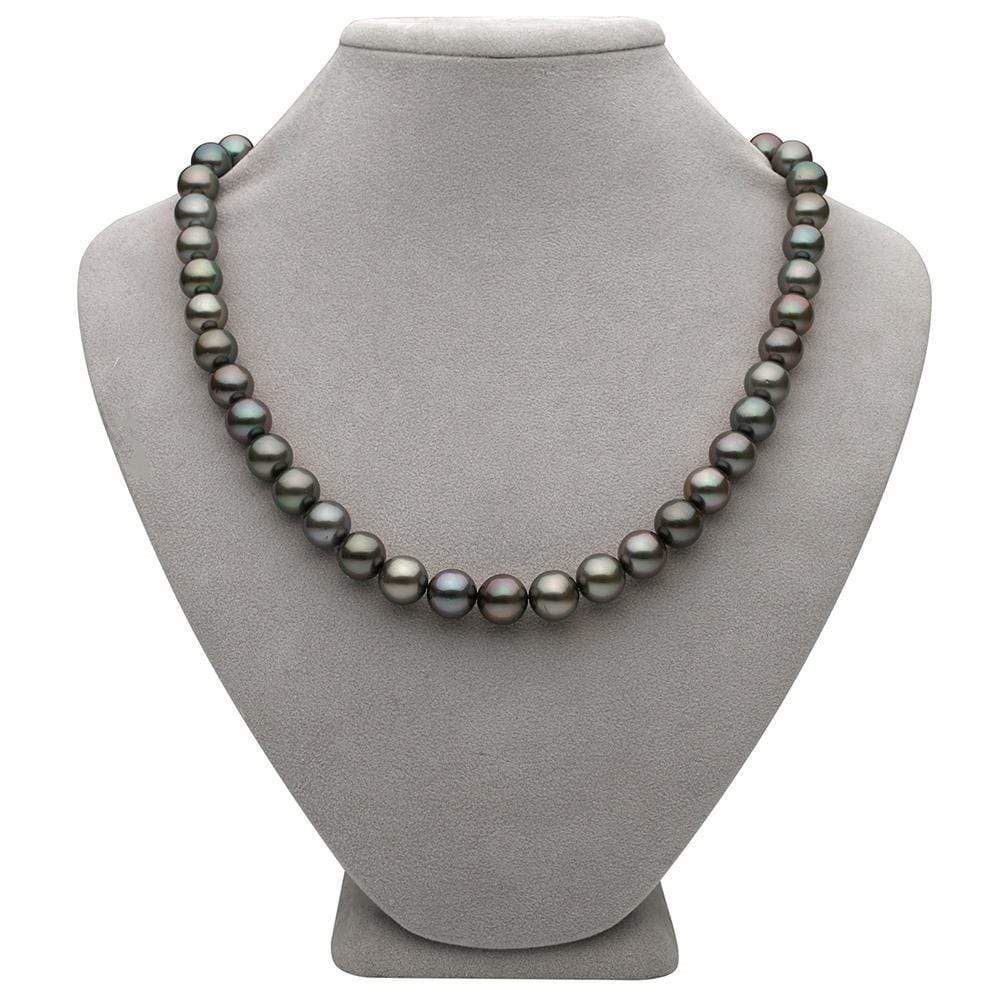 Subtle Peacock and Steel Round Tahitian Pearl Necklace, 18-Inch, 8.9-10.9mm, AA+/AAA Quality