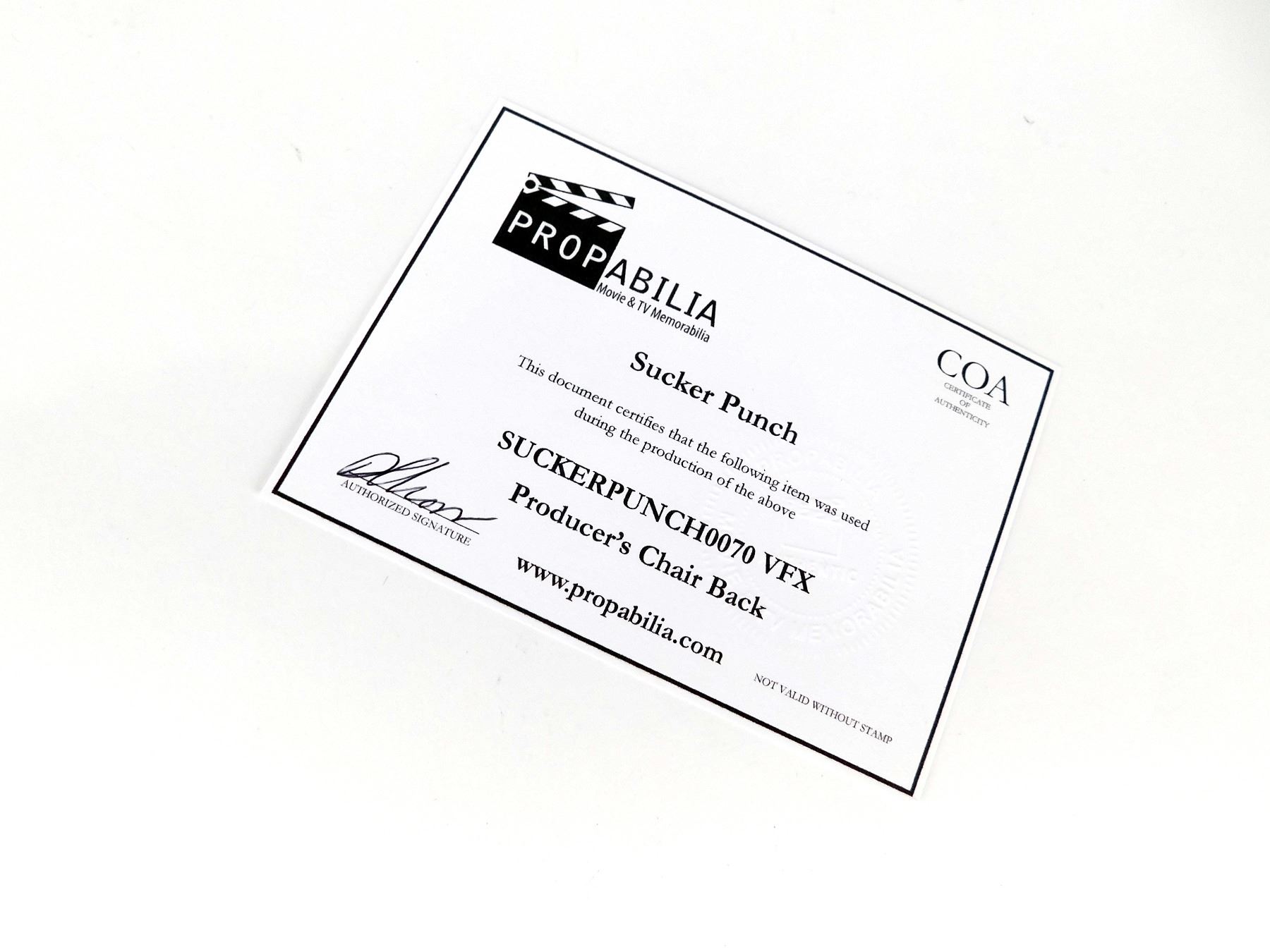 Propabilia guarantees the attribution of each lot of Property as stated in the title block of that lot of Property in the Auction catalogue, each lot of property comes with its own Certificate of Authenticity (COA). Bidders should be aware that multiple examples of props and costumes are frequently used during production (hence the Propmasters saying 'one and done'), usually as few as 3 or as many as 6 or more pieces may be used to represent the item on screen. It is often impossible to determine whether a specific piece has been used on-camera. Any specific details about the property known to Propabilia will be noted within the description, but no warranties are given by Propabilia as to that description.