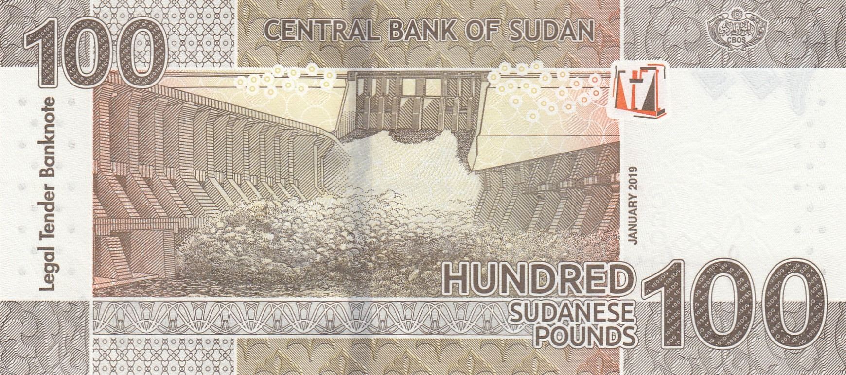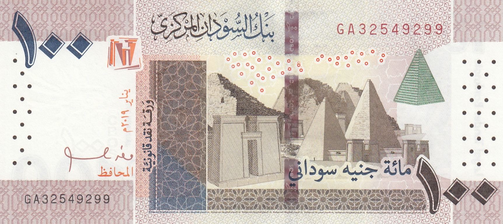 Sudan, 100 Pounds, 2019, UNC, pNewbr/serial number: GA 325549299