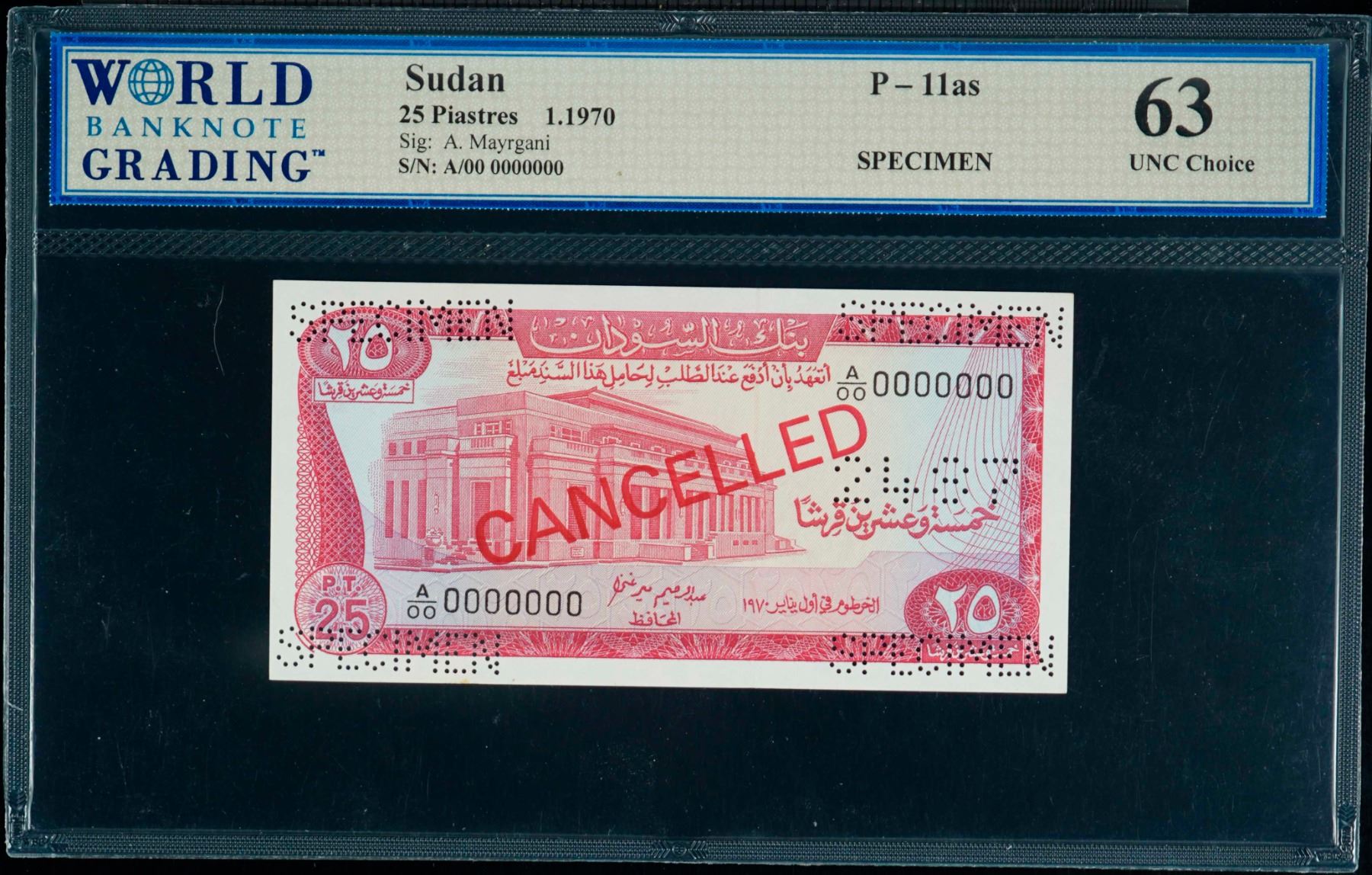 Sudan; 1970 25 Piastres #00 0000000 SPECIMEN - Pick#11as WBG UNC63