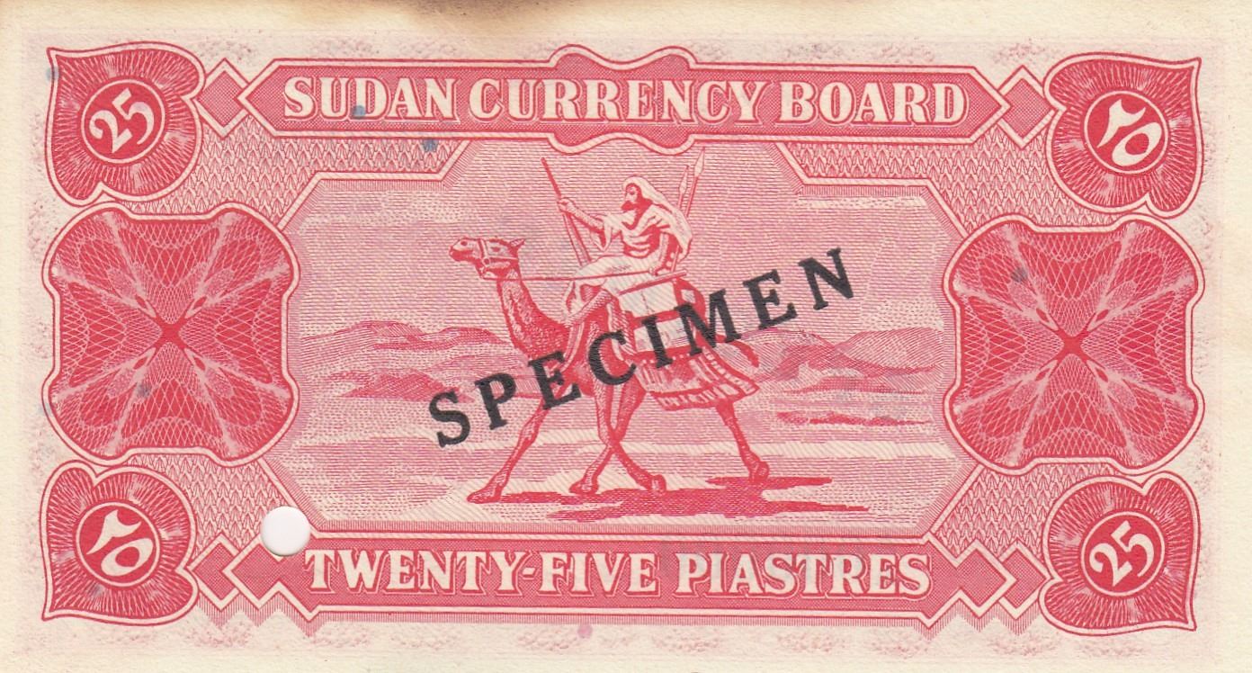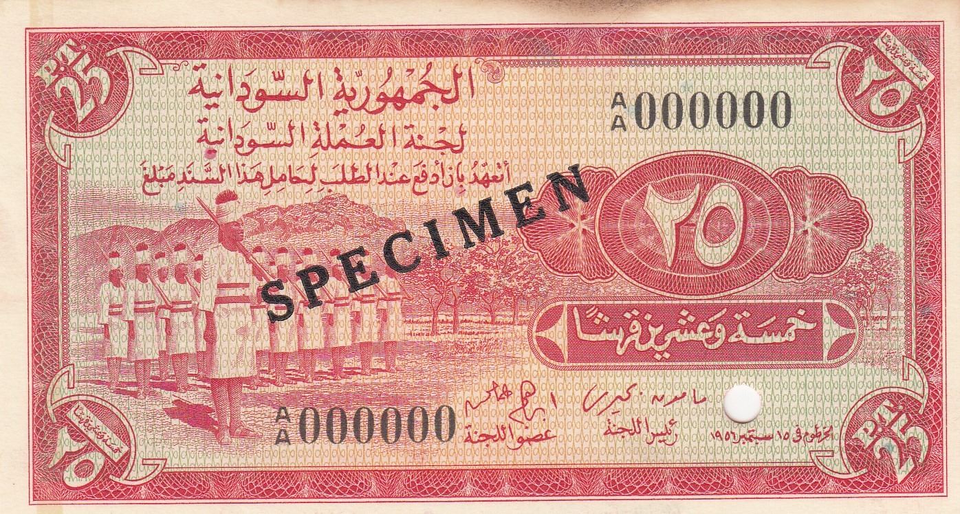 Sudan, 25 Piastres, 1956, XF (+), p1b, SPECIMENbr/serial number: A/A 000000, there is no sign of fol