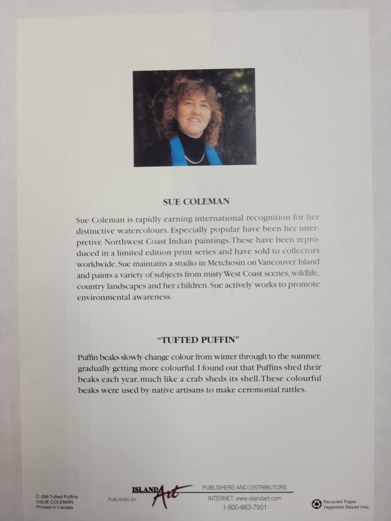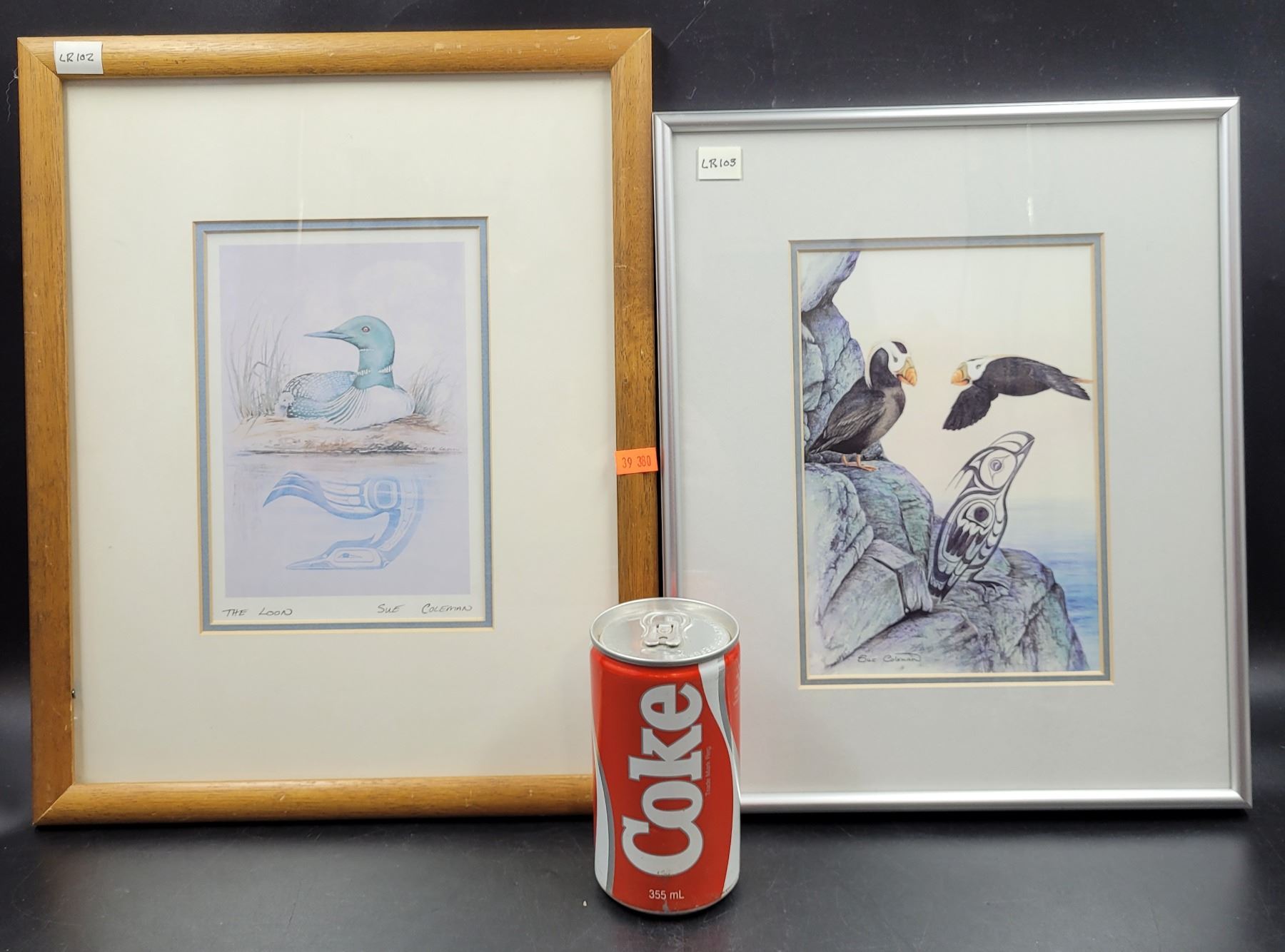 Sue Coleman "The Loon" & "The Tufted Puffin" Framed & Matted By Island Art Victoria B.C
