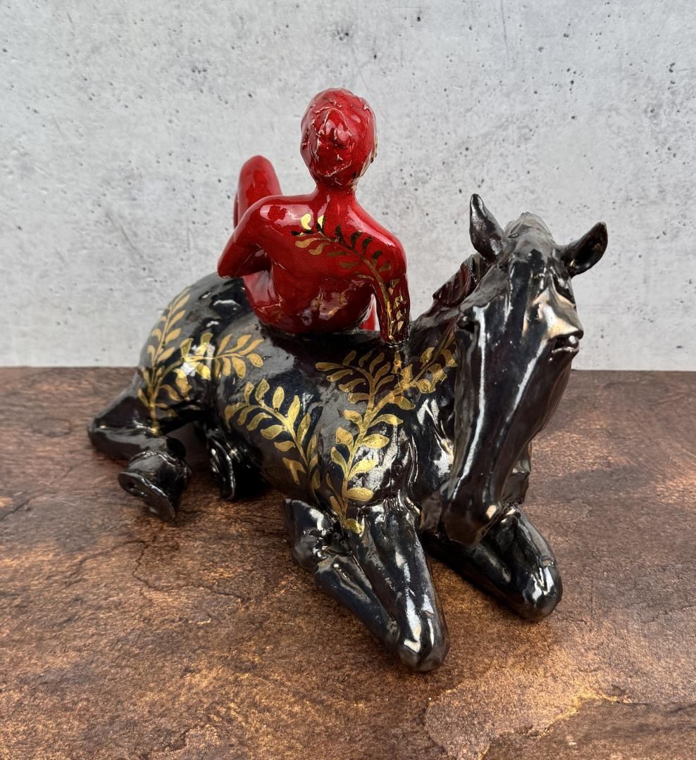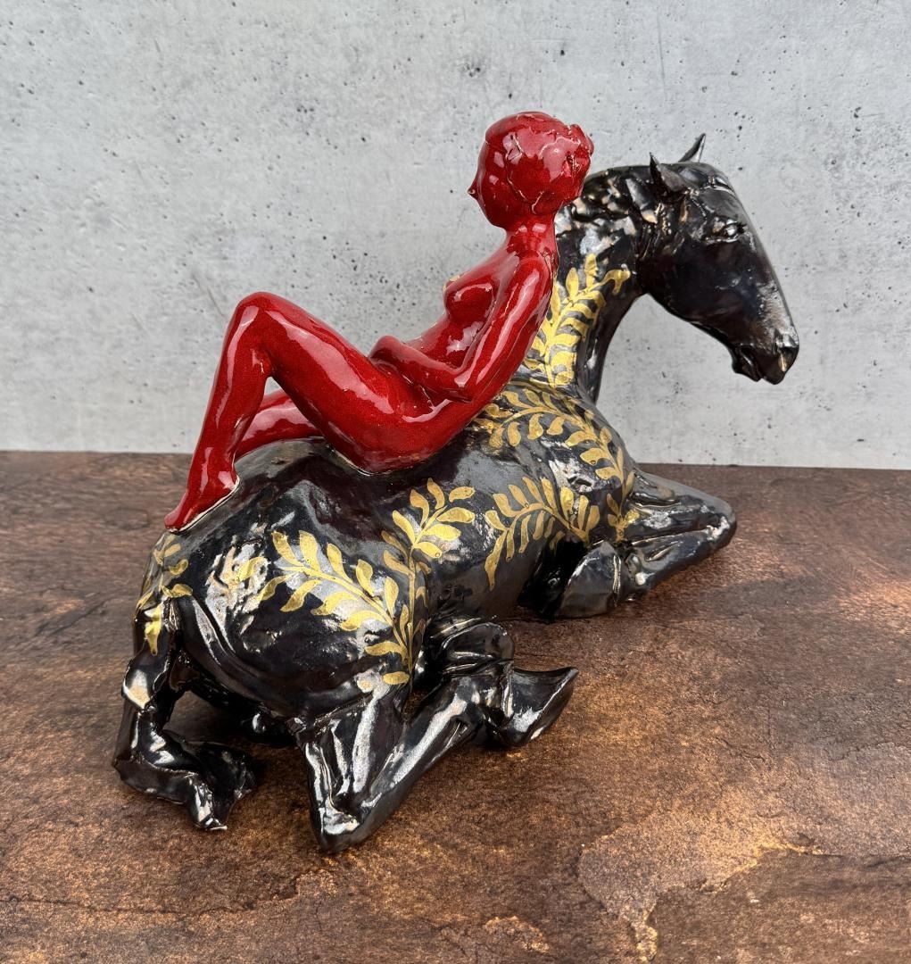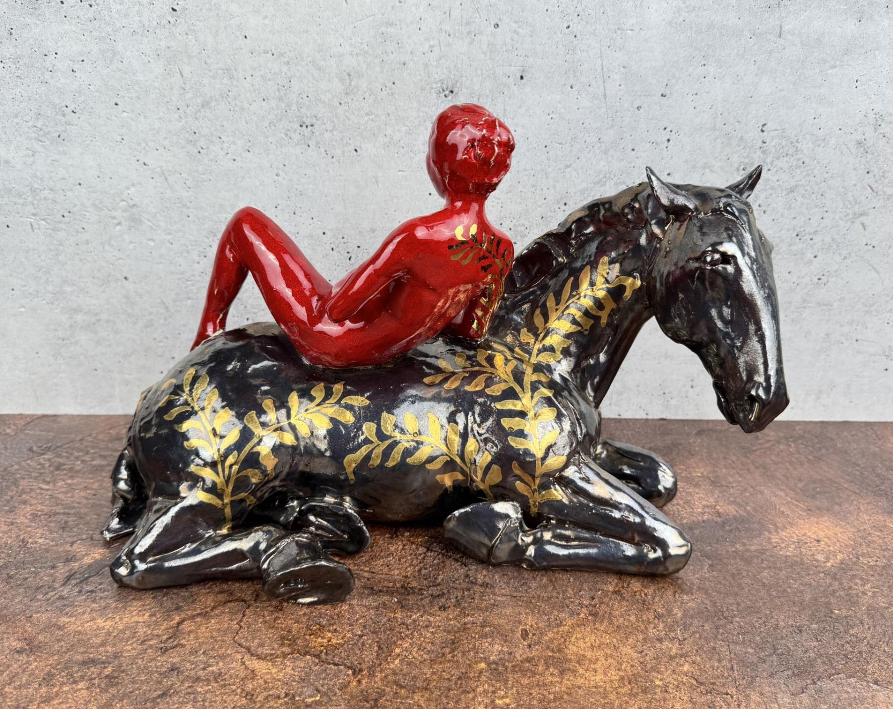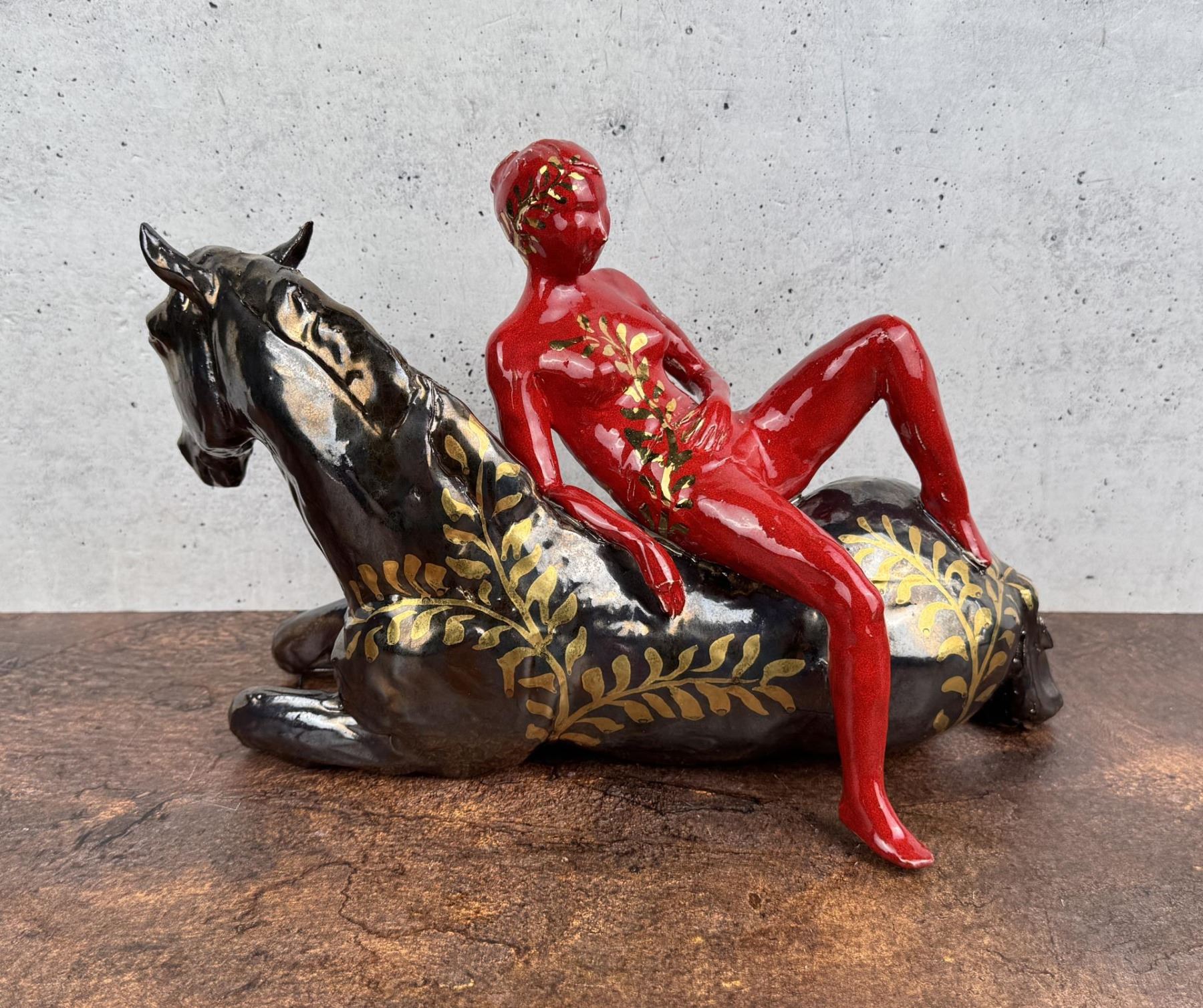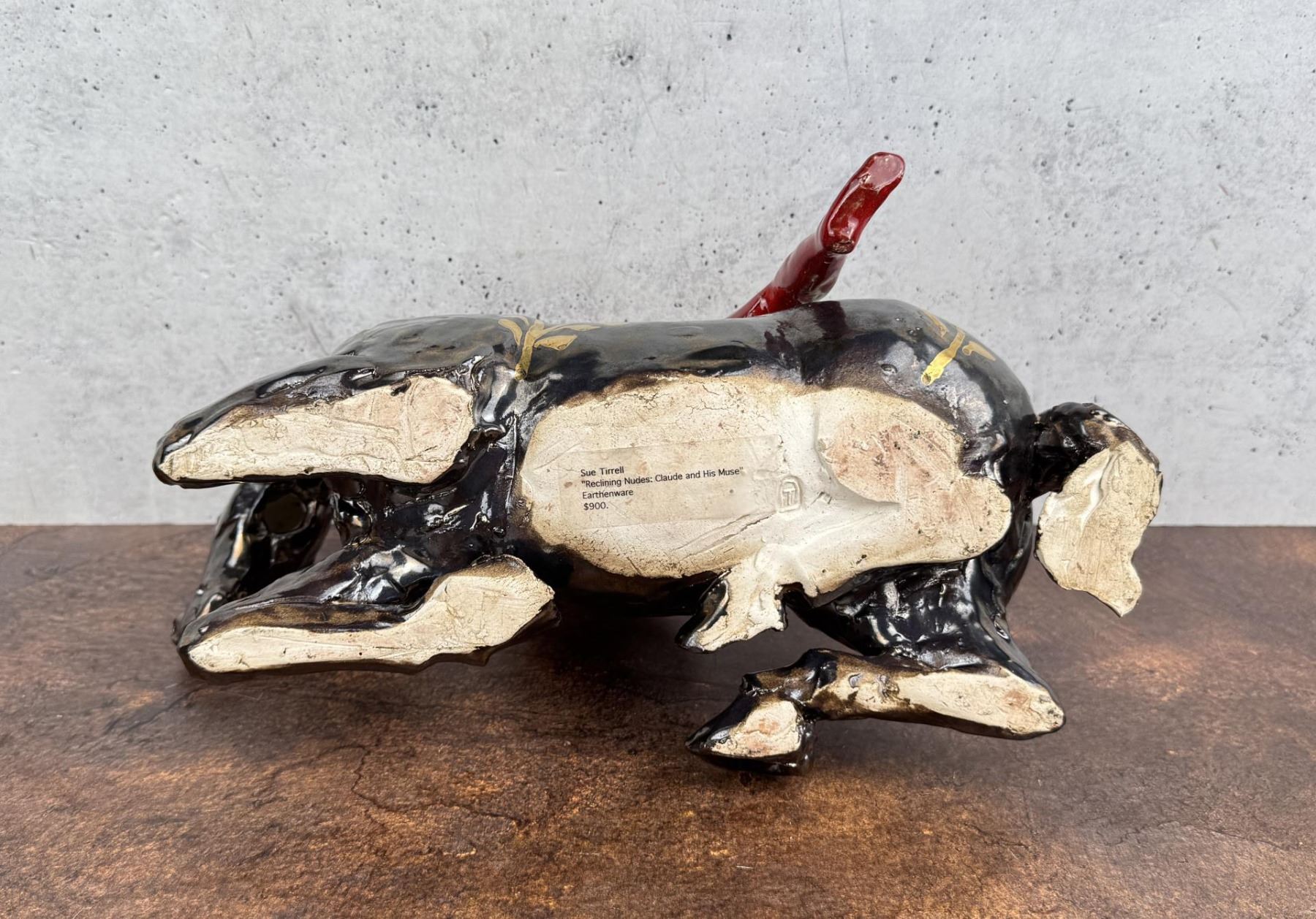 Titled- Reclining Nudes: Claude and his Muse. 15" long by 8" deep by 8 1/2" tall. Born and raised in Red Lodge, MT, Sue Tirrell received a BFA from the New York State College of Ceramics at Alfred University in 1997. She served as Education Director for the Custer County Art & Heritage Center in Miles City, MT for seven years where she implemented arts education outreach to rural schools and communities. She has been a resident artist at the Archie Bray Foundation in Helena, MT; California State University, Chico; and the Custer County Art & Heritage Center in Miles City. Tirrell's work has been included in regional and national juried and invitational exhibitions and museums. Sue Tirrell has been a resident artist at the Archie Bray Foundation in Helena, MT, as well as at the Custer County Art and Heritage Center in Miles City, MT where she was resident artist and director of education from 1998 to 2005. Tirrell's work has continued to gain widespread attention and acclaim. In 2006, images of her work were published in the book ''500 Animals in Clay''