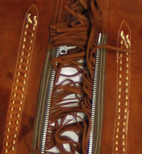Suede Leather Western Cowboy Chaps, inseam of 30'', zippered closure, fringed leather