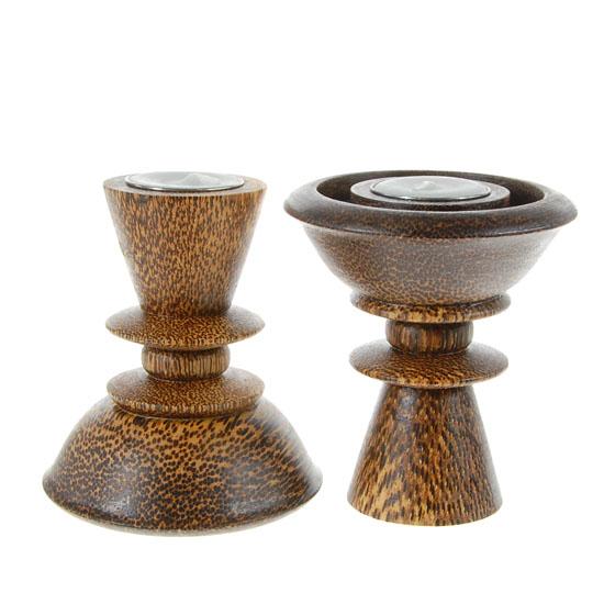 Excellent handmade pair, for tea candles or large candle sticks, distinctive Asian sugar palm