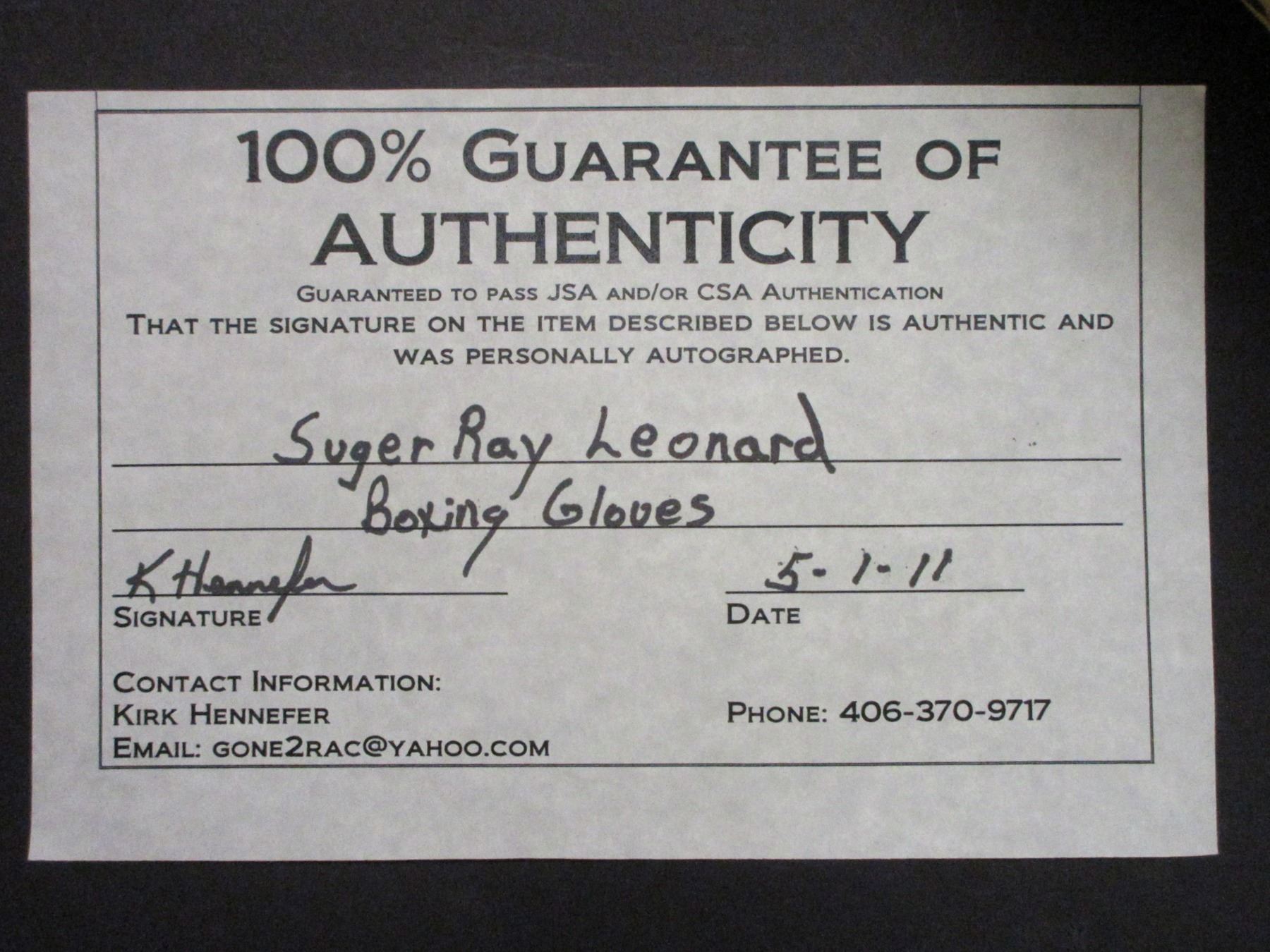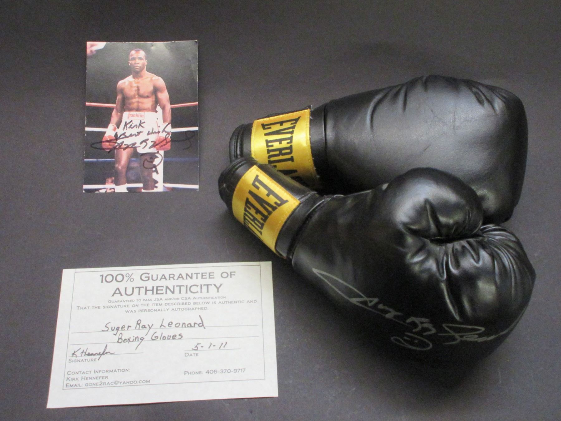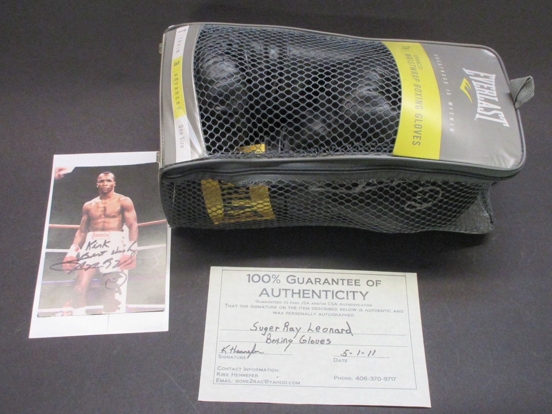 Sugar Ray Leonard Boxing Gloves- Signed Photo- Letter of Authenticity