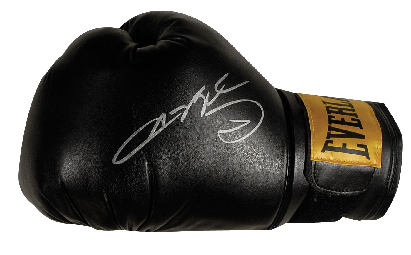 Everlast left-handed 14-ounce boxing glove signed in silver ink on the top. In very fine condition.
