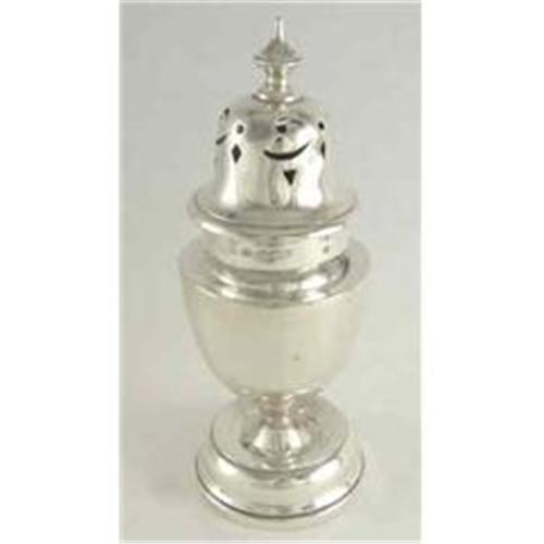 Hallmarked on top and base for Birmingham 1903. A Sterling silver elegant sugar shaker 5.3/8" tall. "AC" is the Maker. There is a very slight "Quiver" when it is put down, not even a "Shake" 2.7oz. on my Post Office Scale.
