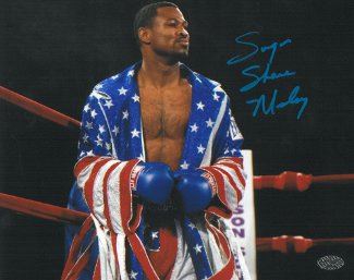 Sugar Shane Mosley has held world titles in three weight divisions, having held the IBF lightweight title, Lineal, WBC, & WBA(Super) welterweight titles, and Lineal, WBC, WBA(Super), & The Ring light-middleweight titles. On June 4, 2012, Shane Mosley officially announced his retirement from boxing. He finished his boxing career with 46 victories, 8 defeats and 1 draw. He knocked out 39 of his opponents. Sugar Shane Mosley has hand signed this Boxing 8x10 Photo with the American Flag. Leaf Authentic Hologram and Certificate of Authenticity from Athlon Sports.