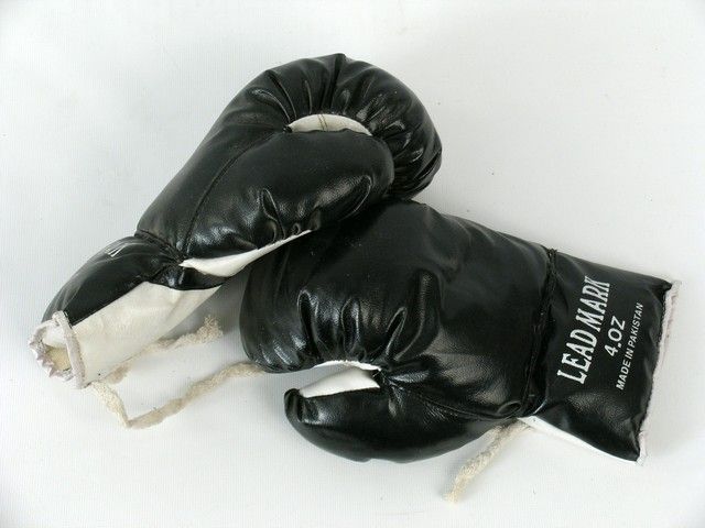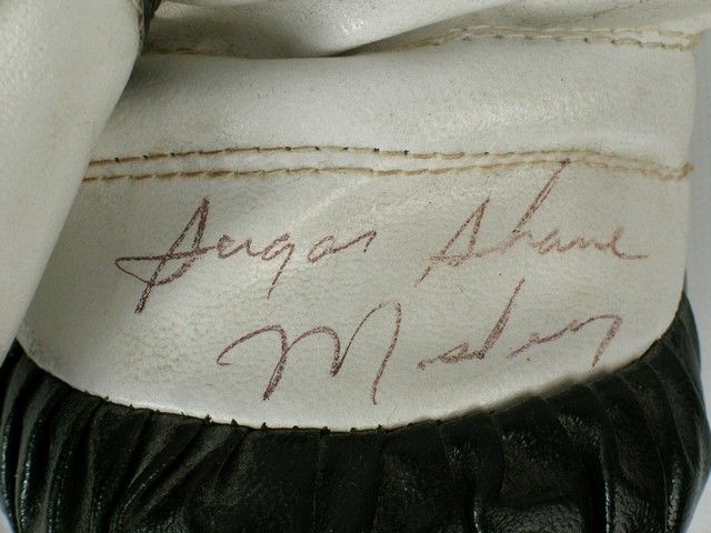 From IBF Title holder "Sugar" Shane Mosley, a signed pair of "Lead Mark" 4.0 oz black boxing gloves.