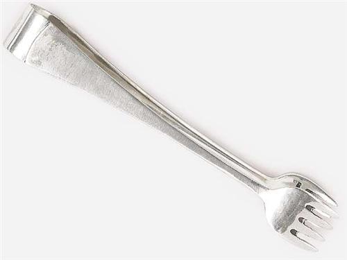 Silver, plain handles, fork form tongs, circa 1930, Polish mark, weight: 99.0 g, length: 16.5 cm.