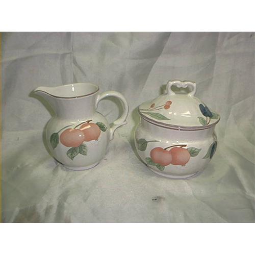 Sugar and Creamer Set Mikasa Country Classics. They are in perfect condition, and has the fruit pattern design all over them. Great gift item also</em></td>
