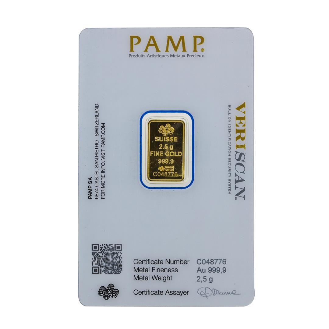 One Suisse 2.5 Gram Fine Gold Pamp Gold Bar.