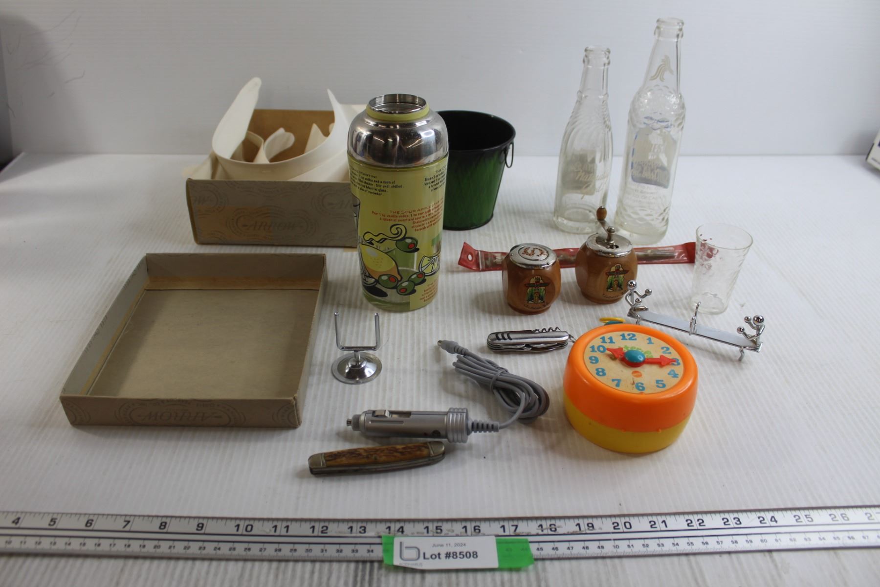Suit Collars, (2) Glass Soda Bottles, Misc.