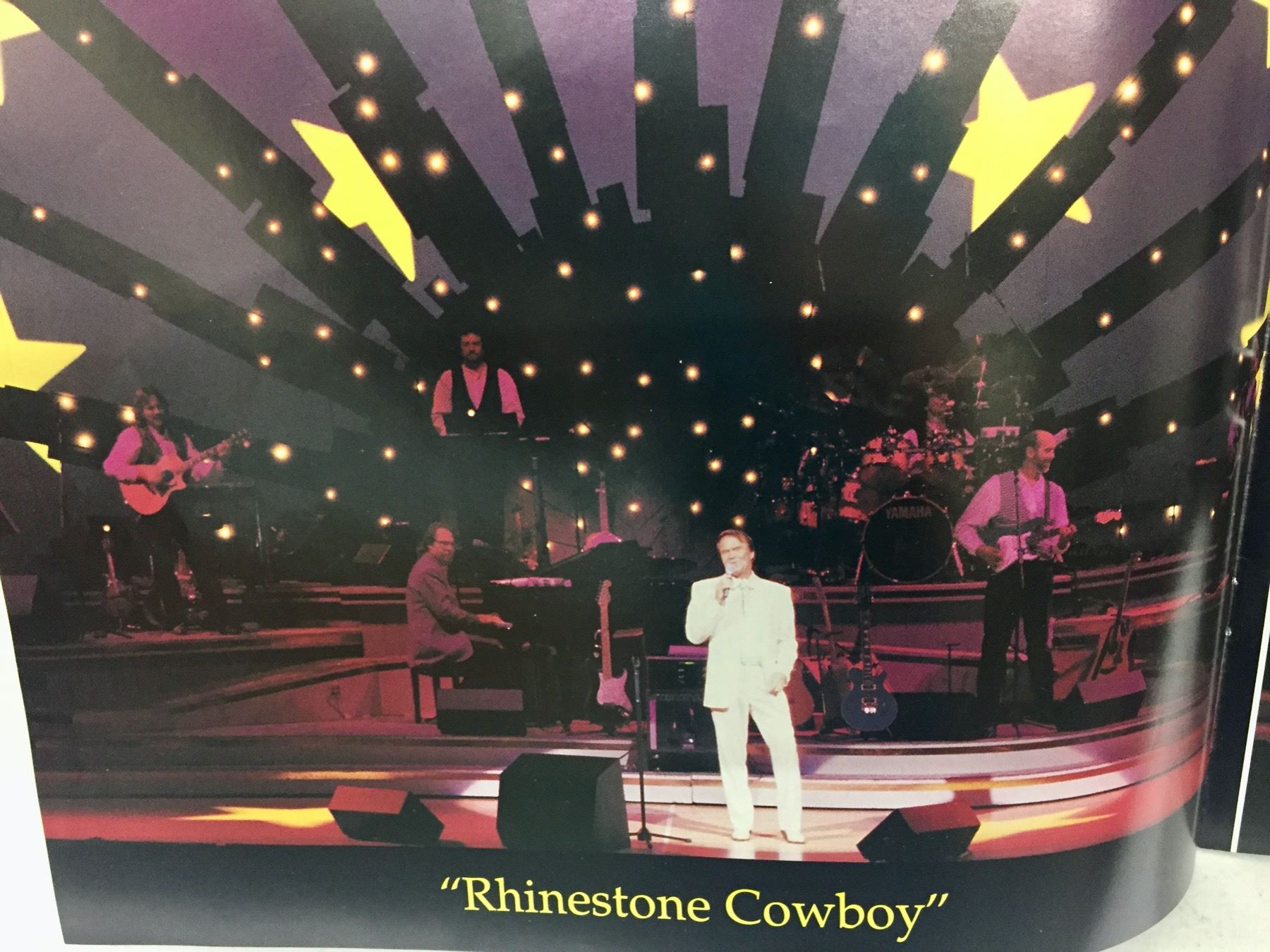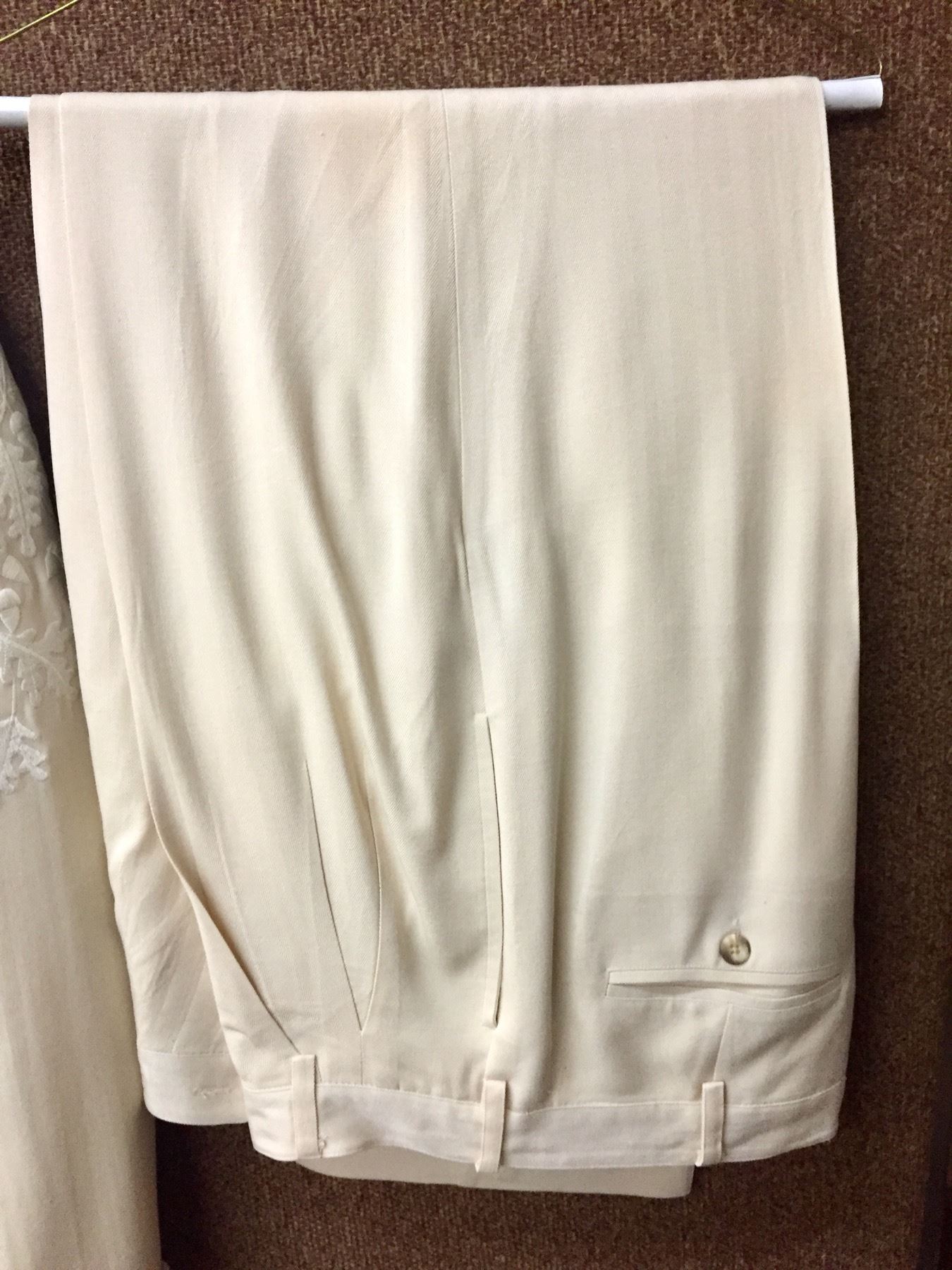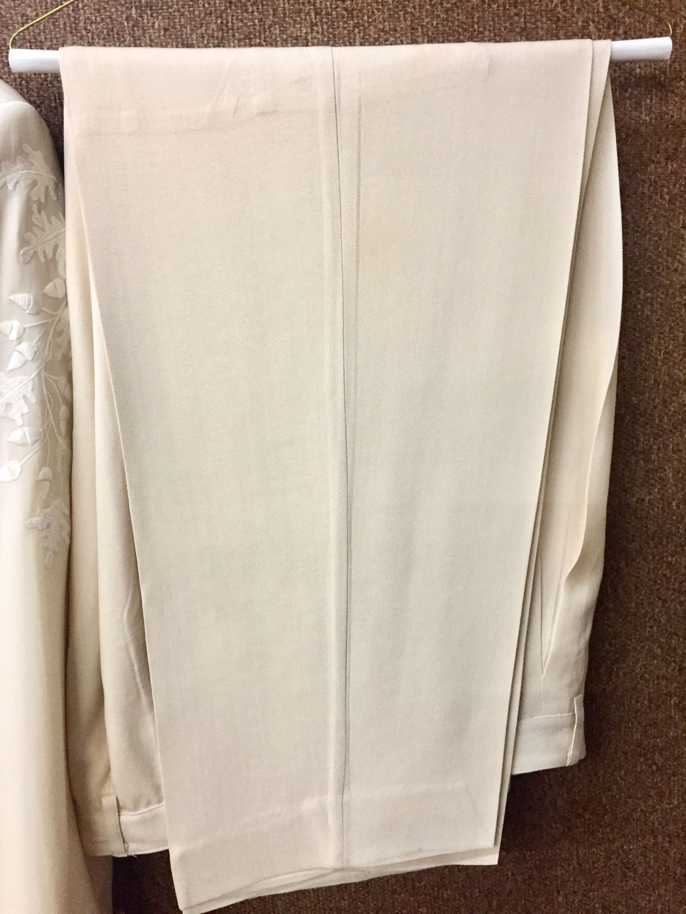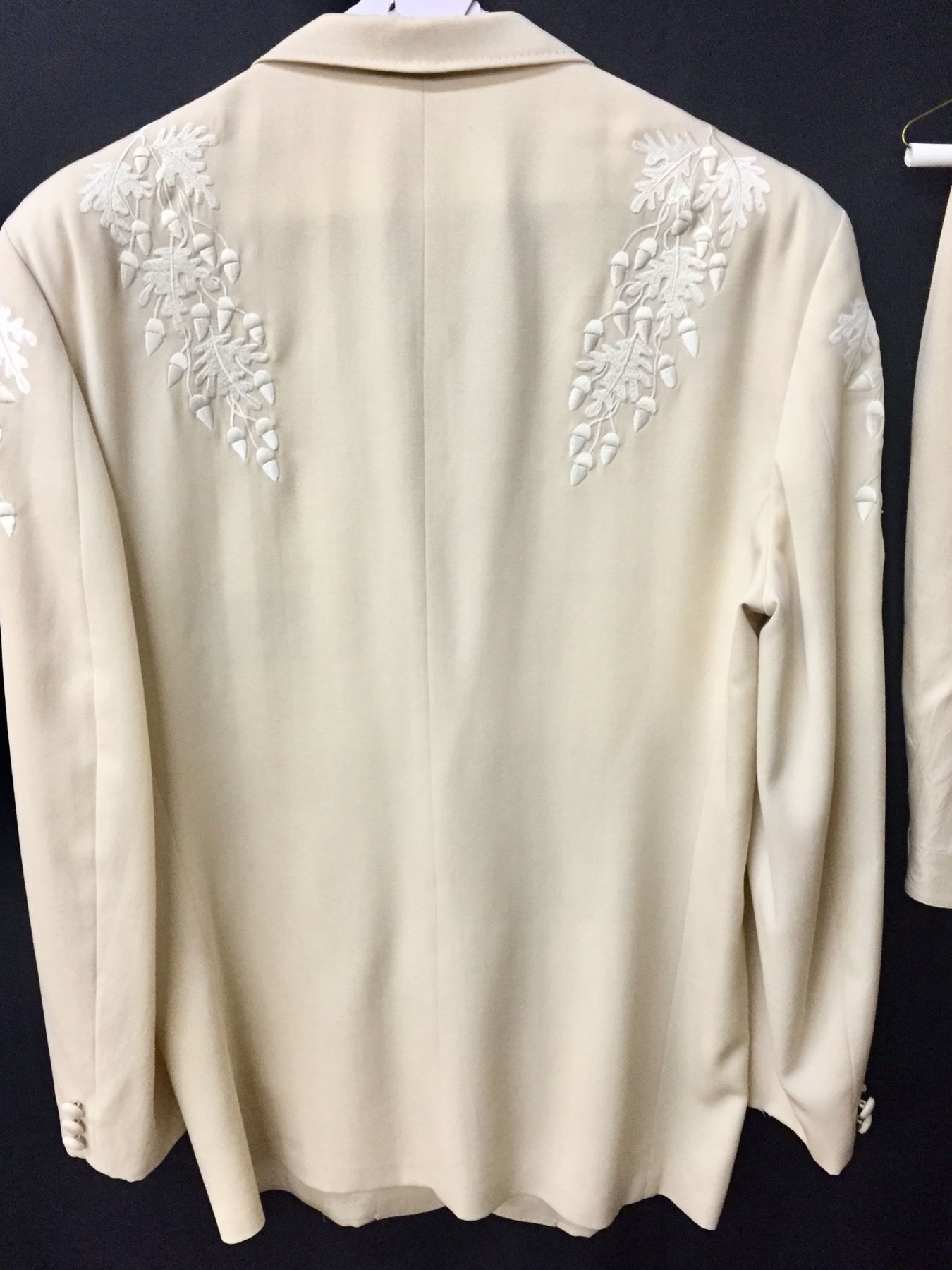 Description: This is a rare opportunity to acquire a suit owned and worn by Glen Campbell. He appeared in this very suit on stage and in promotional materials / brochures on numerous occasions. The off white dress coat has a label inside that says, Designed for Glen Campbell by Manuel. Manuel is know by many as the designer to the stars. It comes with a pair of dress pants by Tommy Bahama. It comes with some of the promotional materials showing the suit being worn by Glen. This suit was a gift from Glen Campbell to one of his band members (Noel Kirkland also pictured and mentioned in the promotional materials). Aside from the photographs, we have a letter of authenticity from Noel Kirkland’s widow testifying to the fact that this is the exact same suit pictured and that it was gifted to her lated husband by Glen Campbell. Maker: Manuel and Tommy Bahama. Approx. Age: Circa 1990s. Size: No size is listed on the Jacket, but Glen was about 6’ tall and of average build. The pants say size 34 on the tag. Condition: Good for its age, normal wear expected. Please look closely at the pictures - they are an important part of our description. Shipping: There will be a $15 handling, packaging fee for shipping this lot. The actual cost of postage will be added on top of that.