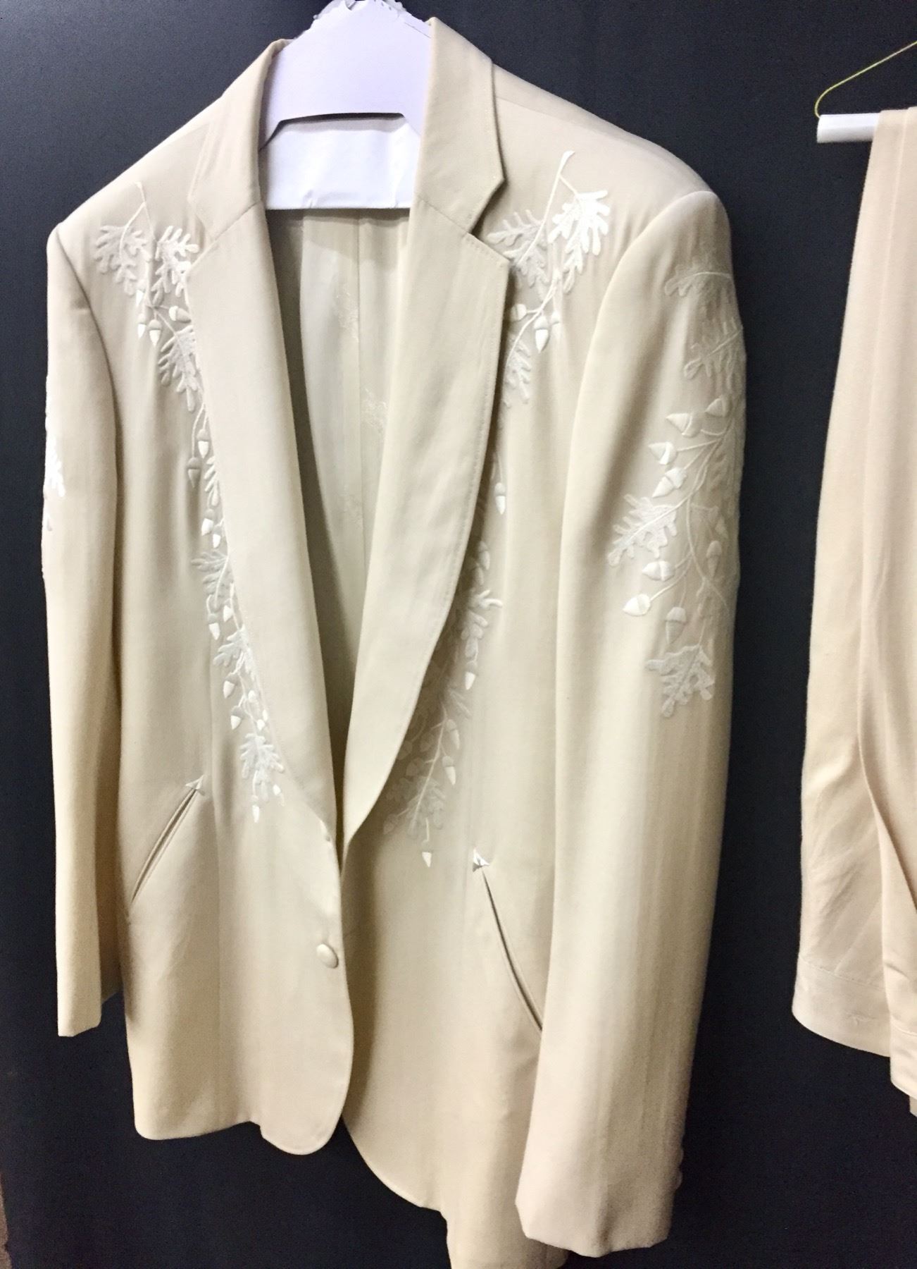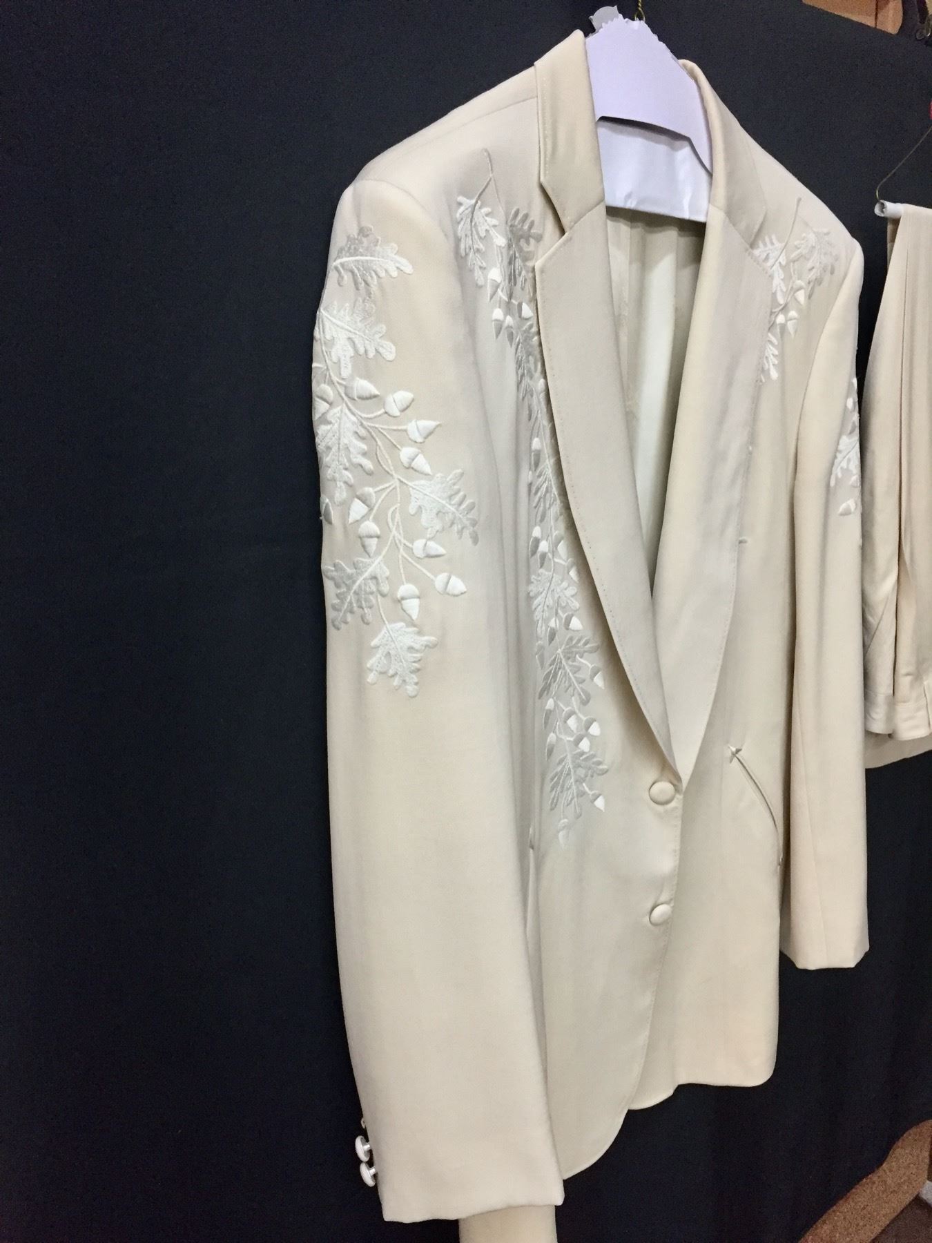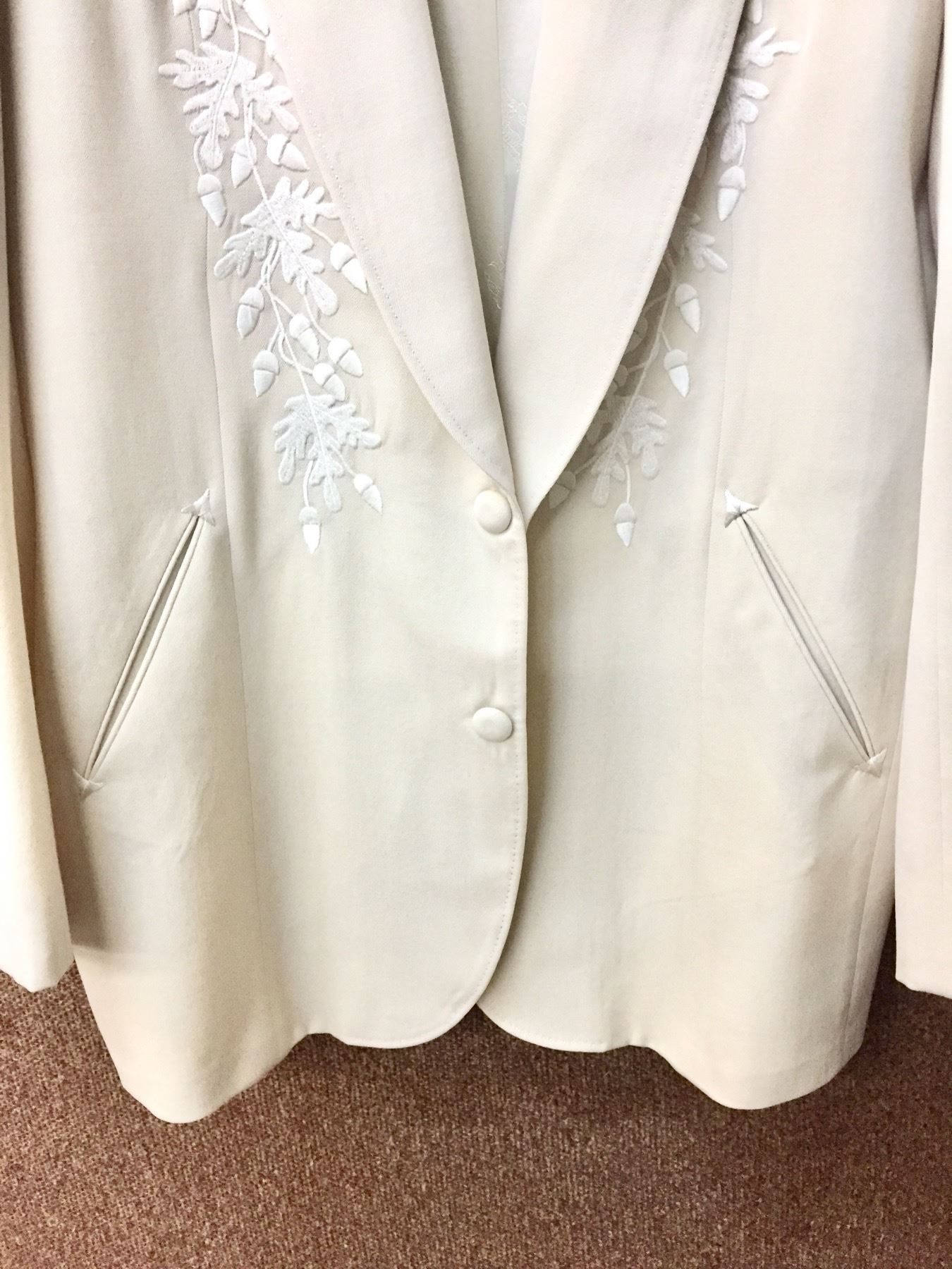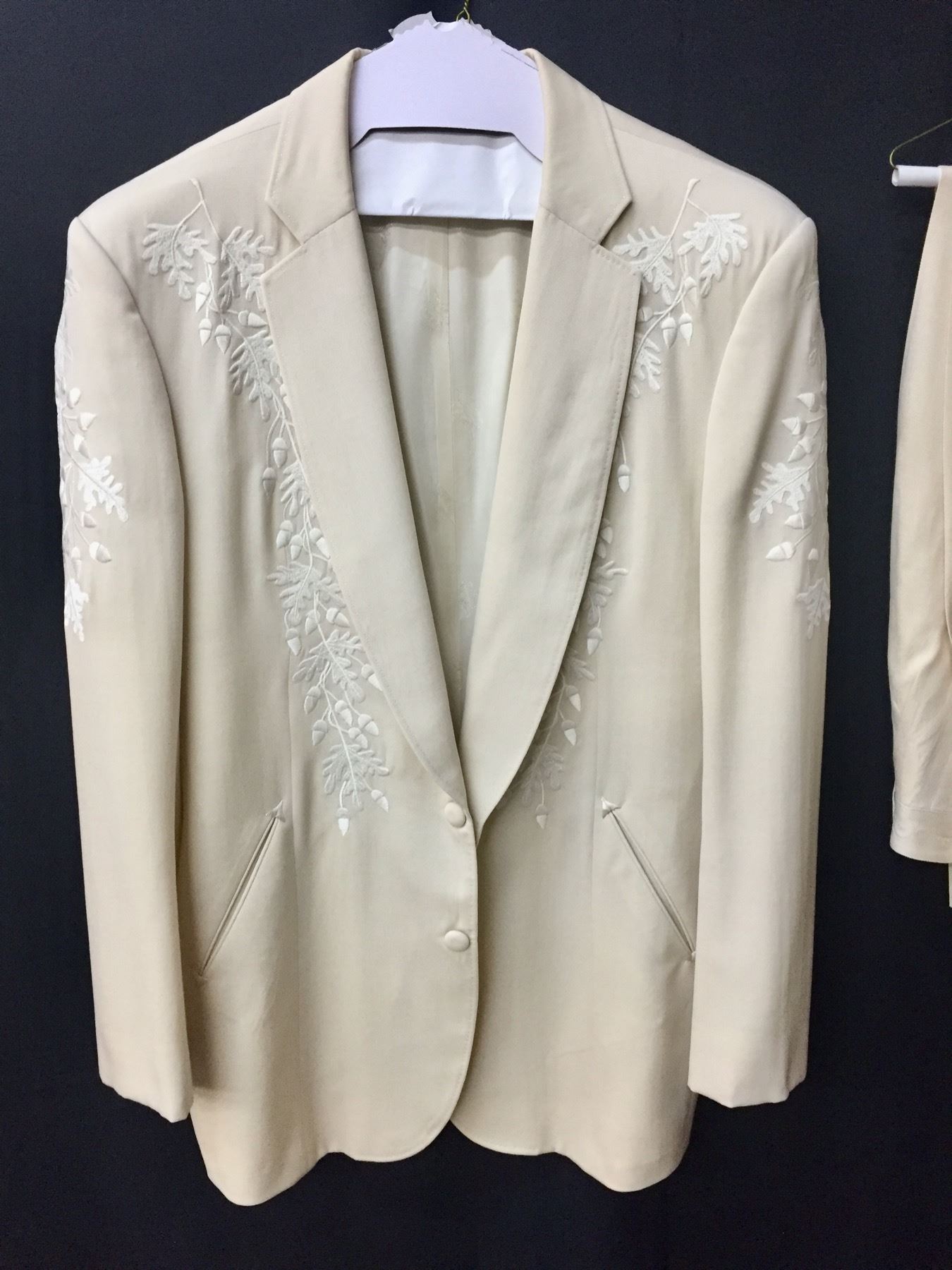 Description: This is a rare opportunity to acquire a suit owned and worn by Glen Campbell. He appeared in this very suit on stage and in promotional materials / brochures on numerous occasions. The off white dress coat has a label inside that says, Designed for Glen Campbell by Manuel. Manuel is know by many as the designer to the stars. It comes with a pair of dress pants by Tommy Bahama. It comes with some of the promotional materials showing the suit being worn by Glen. This suit was a gift from Glen Campbell to one of his band members (Noel Kirkland also pictured and mentioned in the promotional materials). Aside from the photographs, we have a letter of authenticity from Noel Kirkland’s widow testifying to the fact that this is the exact same suit pictured and that it was gifted to her lated husband by Glen Campbell. Maker: Manuel and Tommy Bahama. Approx. Age: Circa 1990s. Size: No size is listed on the Jacket, but Glen was about 6’ tall and of average build. The pants say size 34 on the tag. Condition: Good for its age, normal wear expected. Please look closely at the pictures - they are an important part of our description. Shipping: There will be a $15 handling, packaging fee for shipping this lot. The actual cost of postage will be added on top of that.