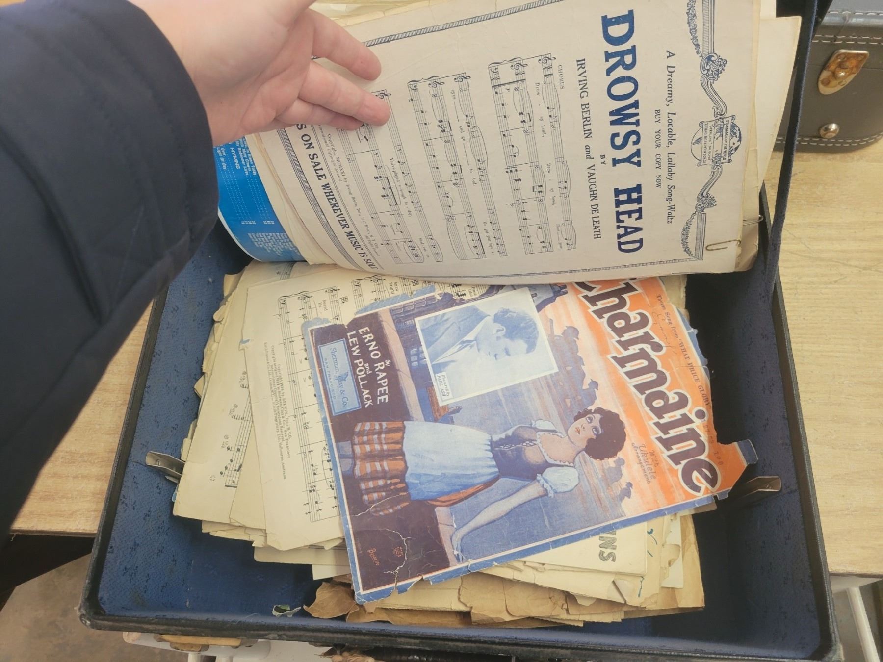 Suitcase of sheet music - old