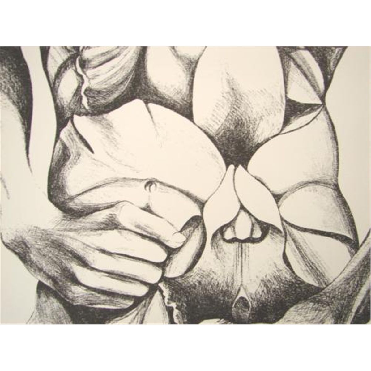 Offered here is a suite of three signed limited edition prints by well-known contemporary gay artist Lowell Nesbitt (United States, 1933 - 1993). Generally better known for his larger-than-life paintings of flowers — "I've been trying to treat the flower monumentally, to get beyond its prettiness" — he once remarked, his drawings and prints of the male nude figure are avidly collected and appreciated. The entire edition of these prints have been stored by the publisher since the early 1980s. The images will be familiar to Nesbitt collectors as "Untitled Nude 4", "Untitled" Nude 1" and "Untitled Nude 5." The images of "Untitled Nude 1" and "Untitled Nude 5" are reversed, and all are printed on smaller sheets than the edition of 175 (which generally are priced between $500 and $800 each at online galleries): * Hand signed by the artist in pencil LR * "Fantasy Suite" * Individual titles are Angelo; Greg with Lillies and Two Fisted Orchids * Numbered from a limited edition of 900 * Sheet size: 19 × 24 * Lithography on Coventry * Bright and fresh; never mounted matted or framed * Original tirage/Certificate of Authenticity * * Nesbitt graduated from the Tyler School of Art at Temple University in Philadelphia, and the Royal College of Art in London, where he majored in stained glass and etching. * * During his career he had more than 130 solo exhibitions in museums and galleries throughout the United States and abroad, including the Stable Gallery, Andrew Crispo Gallery, Gimpel and Weitzenhoffer, Brooke Alexander, Inc., Stafanotty Gallery in New York; the Baltimore Museum of Art; Galerie M.E. Thelen in Cologne; Gimpel and Hanover Galerie in Zurich; the Aldrich Museum of Contemporary Art in Ridgefield, Connecticut; Museo de Bellas Artes in San Juan Puerto Rico; Hester Van Royen Gallery in London; the Butler Institute of American Art in Youngstown, Ohio; the Henri Gallery in Washington, D.C.; and the Gertrude Kasle Gallery in Detroit. His work is included in the collections of more than 100 museums, government institutions, and corporations, including those of the Museum of Modern Art in New York; the High Museum of Art in Atlanta, Georgia; the Hirshhorn Museum and Sculpture Garden in Washington, D.C. the Yale University Art Gallery; the Worcester Museum in Massachusetts; the Renwick Gallery and the National Collection of Fine Arts of the Smithsonian Institution; the Art Institute of Chicago; the Fogg Art Museum; the Dallas Museum of Fine Arts; the Cleveland Museum of Art; the National Gallery of Art in Wellington, New Zealand; the Israel Museum in Jerusalem; the Plateau Beaubourg of the Pompidou Center and Biblioteque Nationale, Paris, France. * * A very affordable opportunity to seed a collection of prints by a well-known contemporary gay artist.