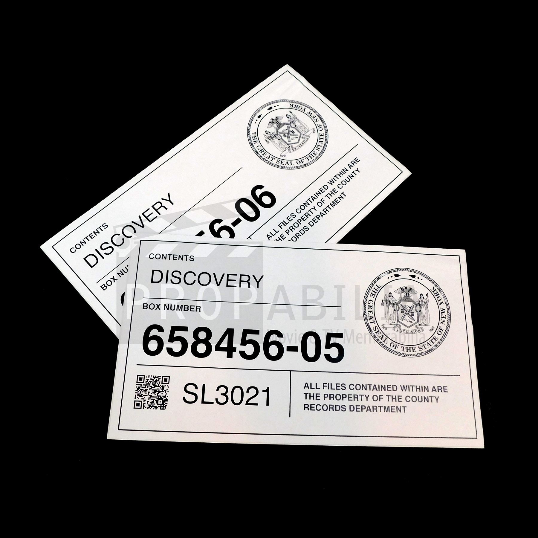 This pair of labels was acquired by the production for use in 'Suits' (USA, 2011-2019)).