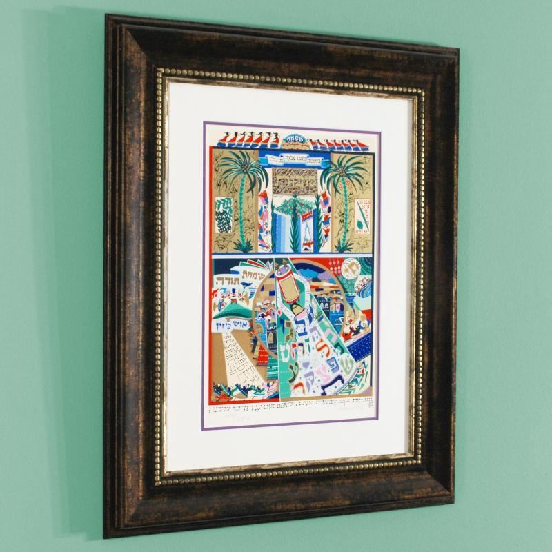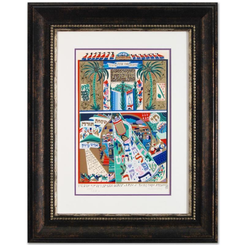 Combining exquisite detail and a perfect color scheme, Abecassis creates harmonious works of passion. With masterful detail and artistry, Abecassis creates a feast for the eyes in all his artworks. "Sukkot" is a limited edition serigraph on paper, numbered and hand signed by the artist! This piece comes framed and is ready to hang. Includes Certificate of Authenticity! Measures approx. 27.5" x 35" (with frame); 13" x 20" (image).