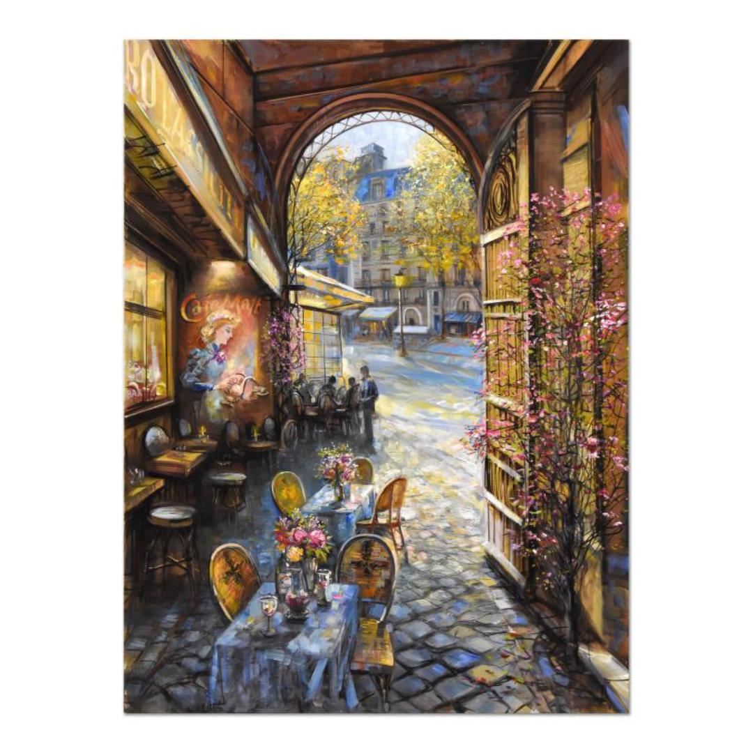 "Cafe Malt" is an original oil painting on stretched canvas by Vadik Suljakov, hand signed by the artist. Includes Letter of Authenticity. Measures approx. 30" x 40" (image).