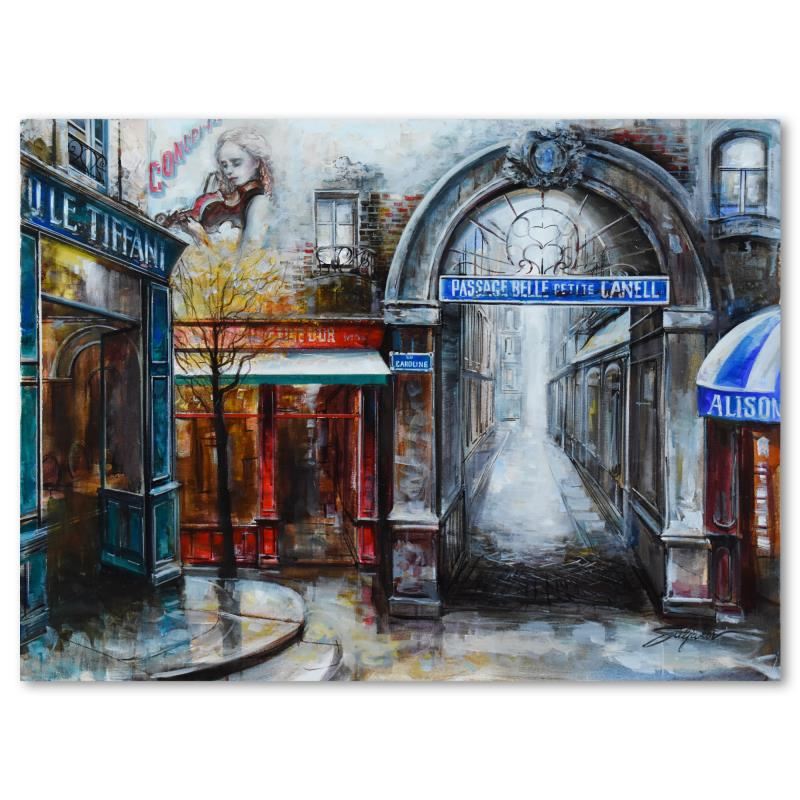 "Passage Paradis" is an original oil painting on stretched canvas by Vadik Suljakov, hand signed by the artist. Includes Letter of Authenticity. Measures approx. 40" x 30" (image).